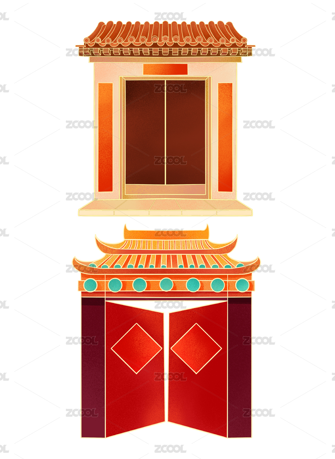 古风门窗矢量插画
