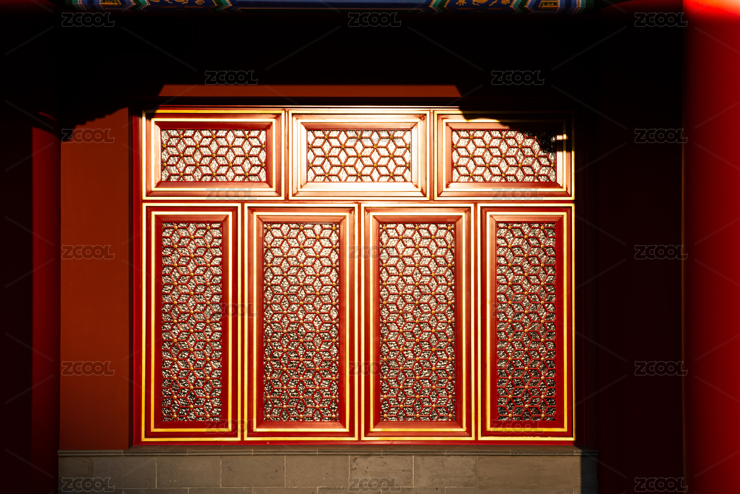 古风,窗棂,窗格,屋门,福字,灯笼,红色,节日,新年,中国风