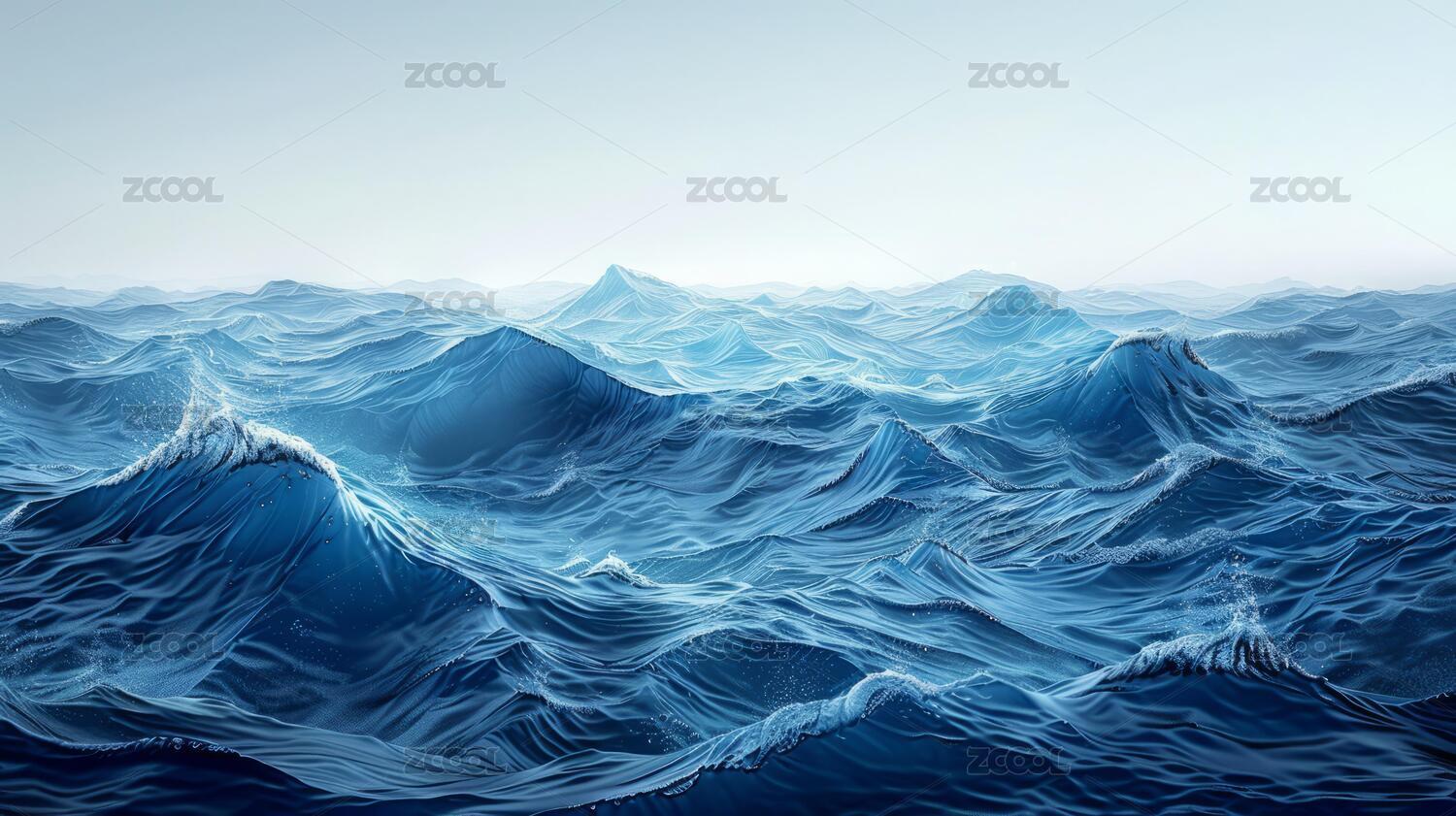 深邃蓝色海洋波浪翻涌