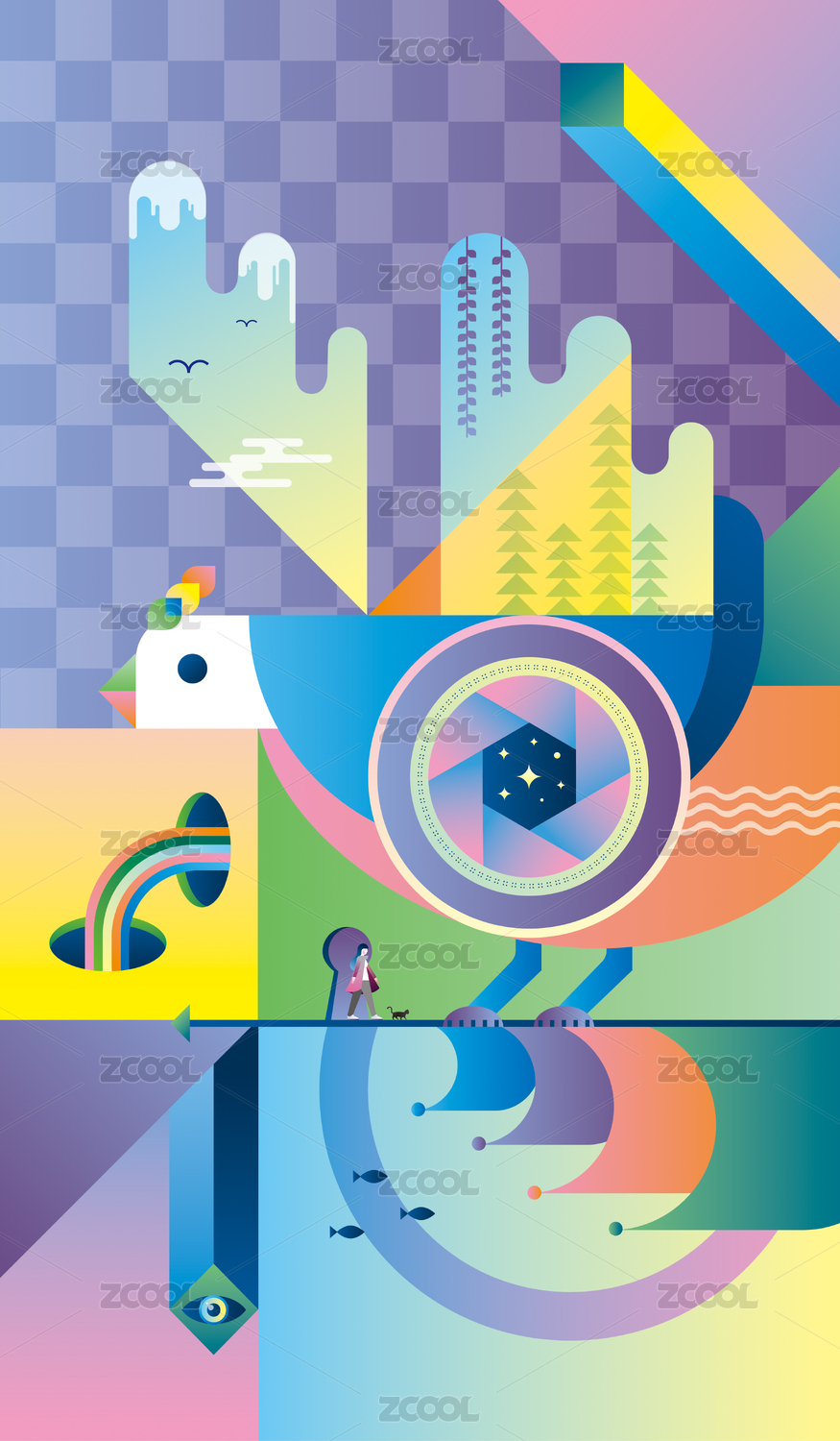 一个女孩走进梦中世界插画壁纸