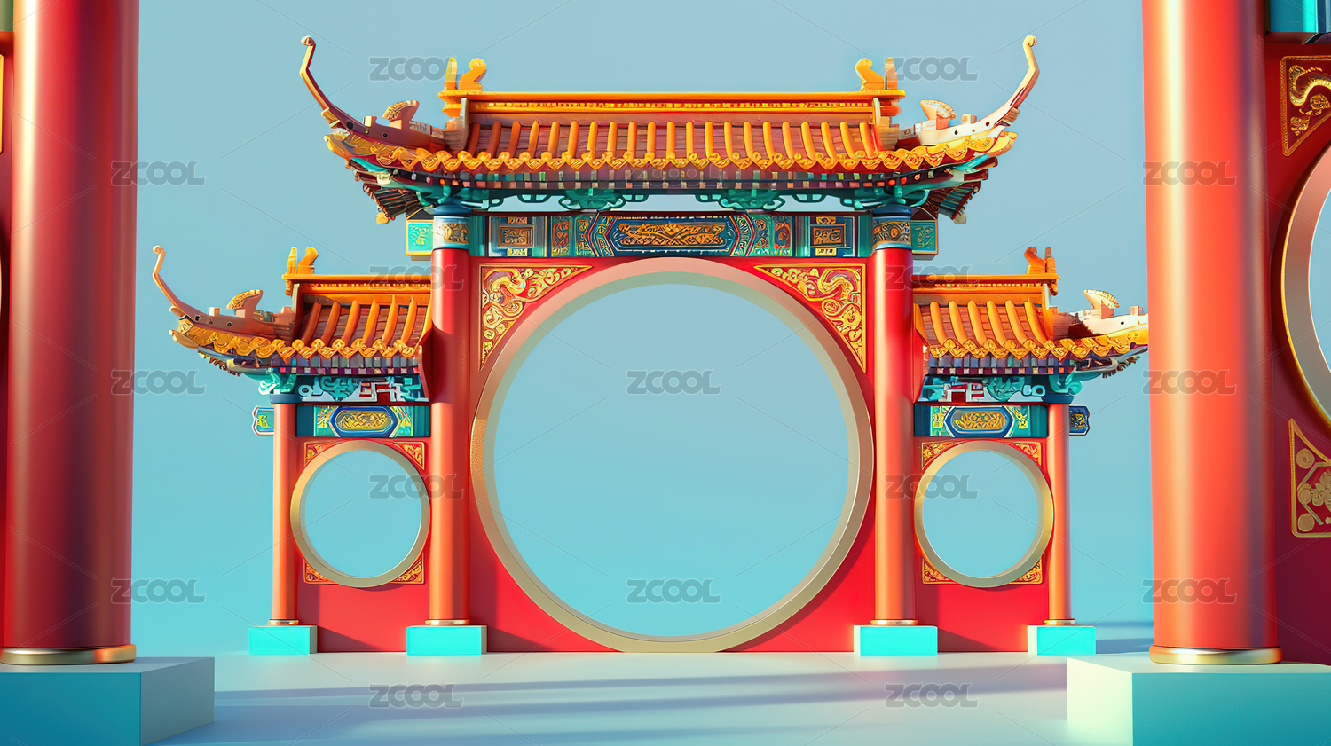 新年,春节,喜庆,热闹,3D,中式,大门,古门,古建筑,门面