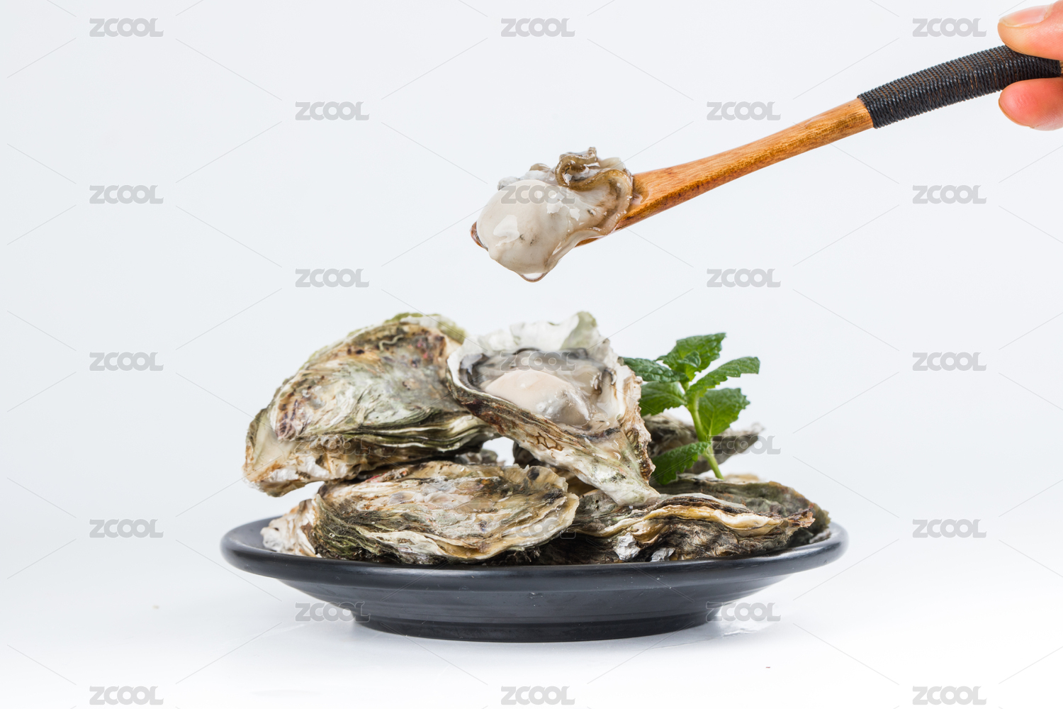 白底上盘子里的生蚝生鲜食材
