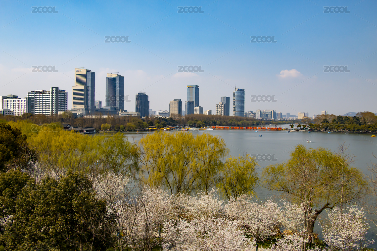 江苏省南京市莫愁湖公园湖滨都市建筑景观