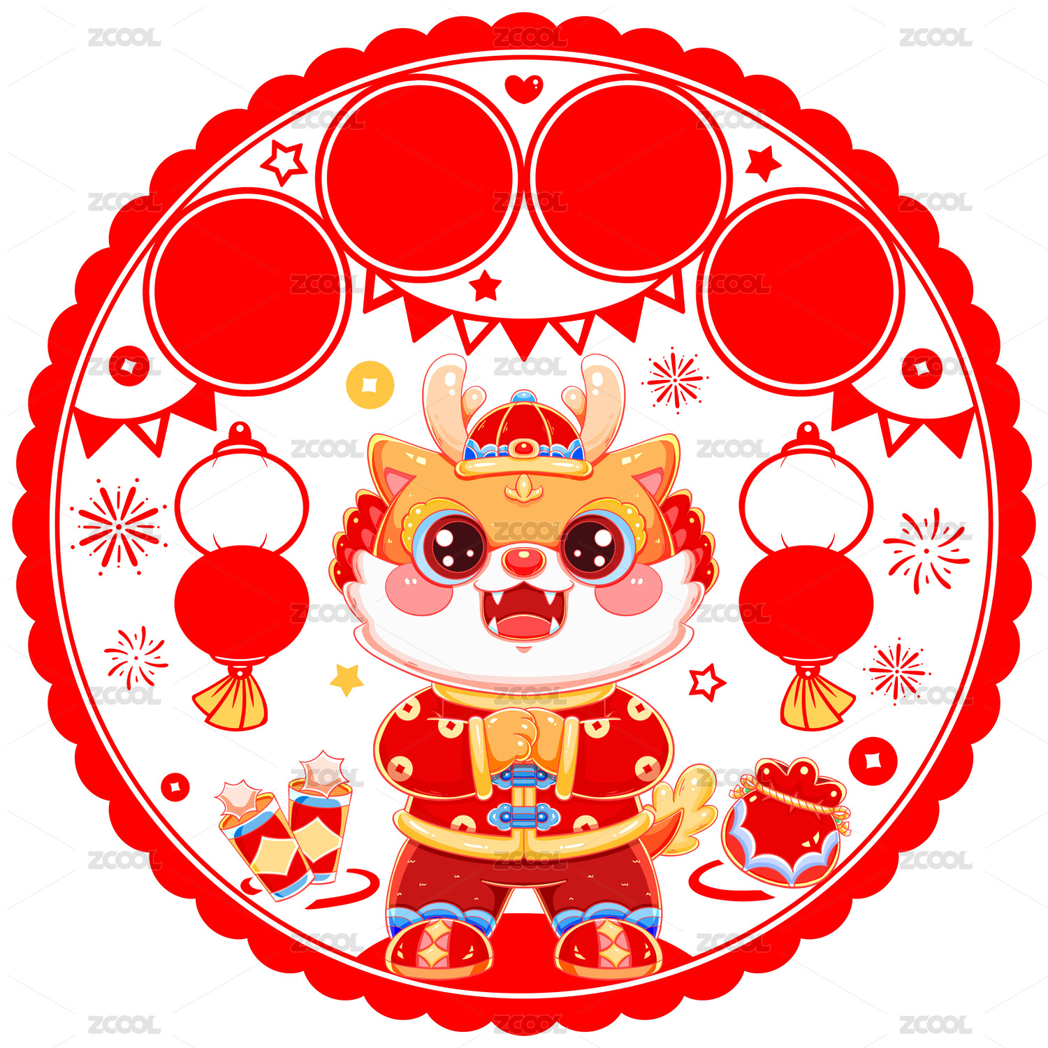 传统,国潮,龙年,中国,龙,贴纸,窗花,年画,2024,生肖