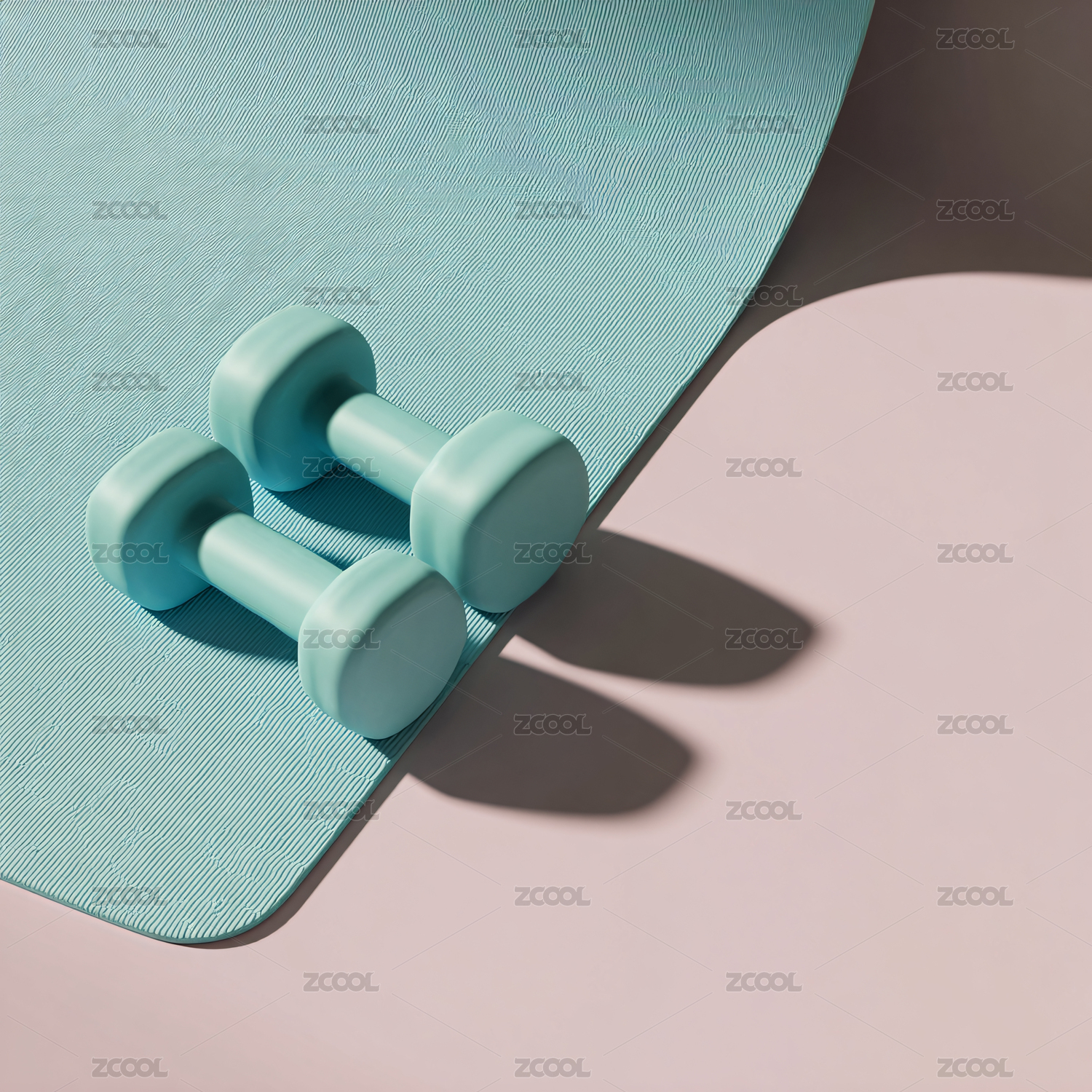 粉红色的哑铃和提壶哑铃放在白色桌面上