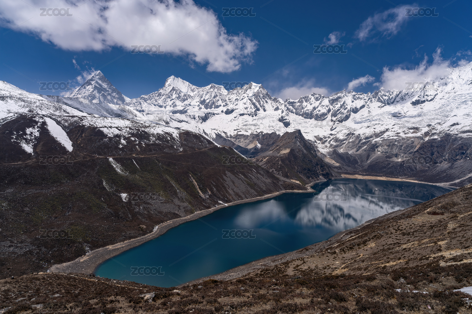 航拍中国西藏宗措湖阿玛直米雪山