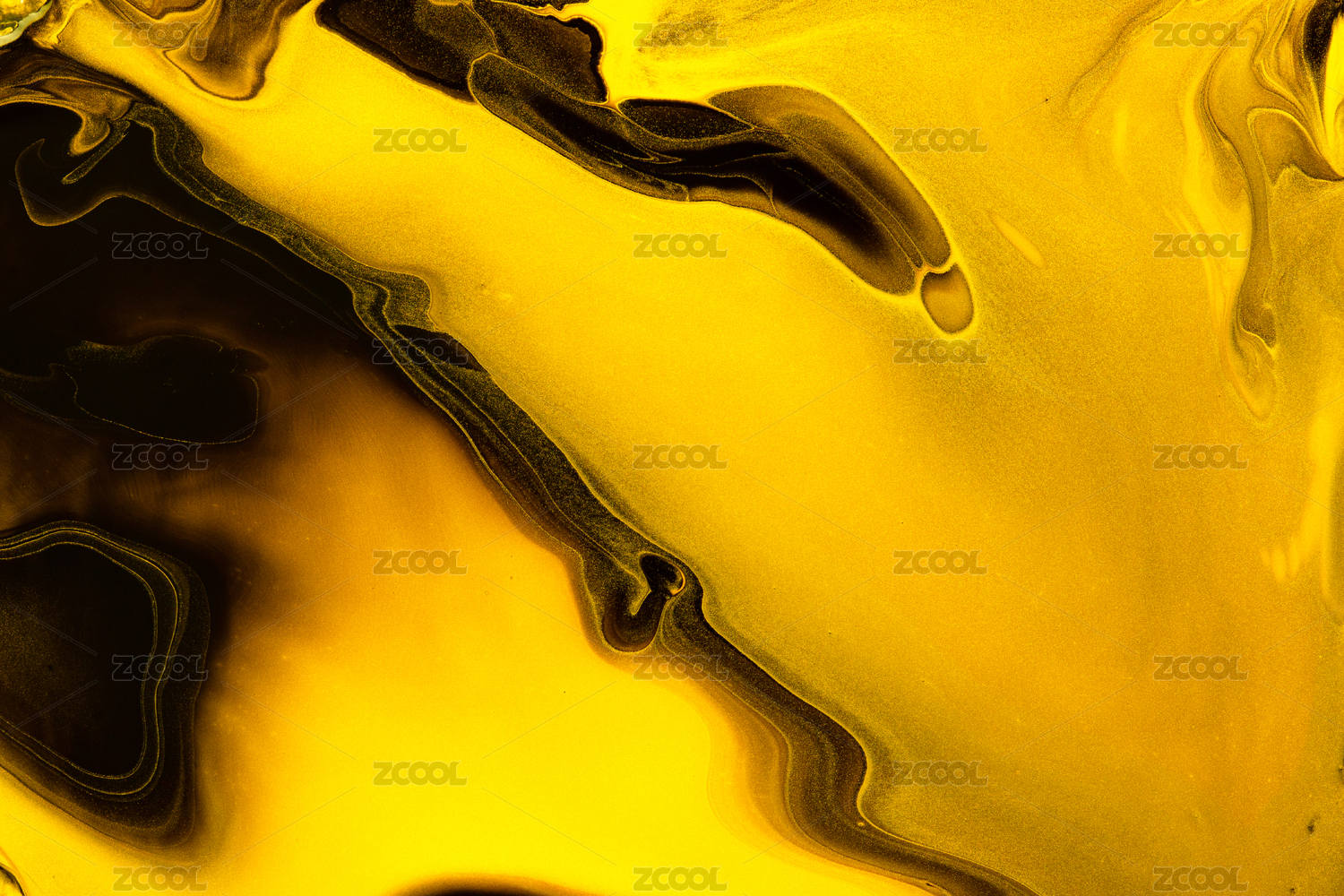 黑黄混合颜料流体艺术,抽象的彩色背景墙纸纹理。