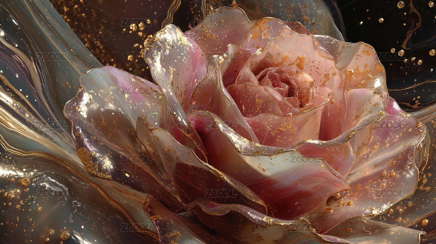 漂亮的金沙油漆抽象艺术玫瑰花插画