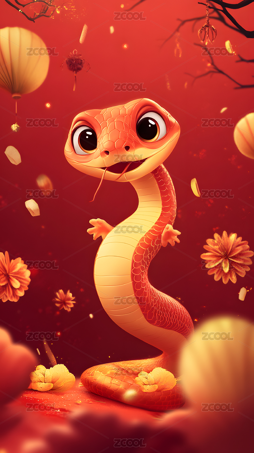 十二生肖蛇年卡通可爱的蛇IP设计春节背景