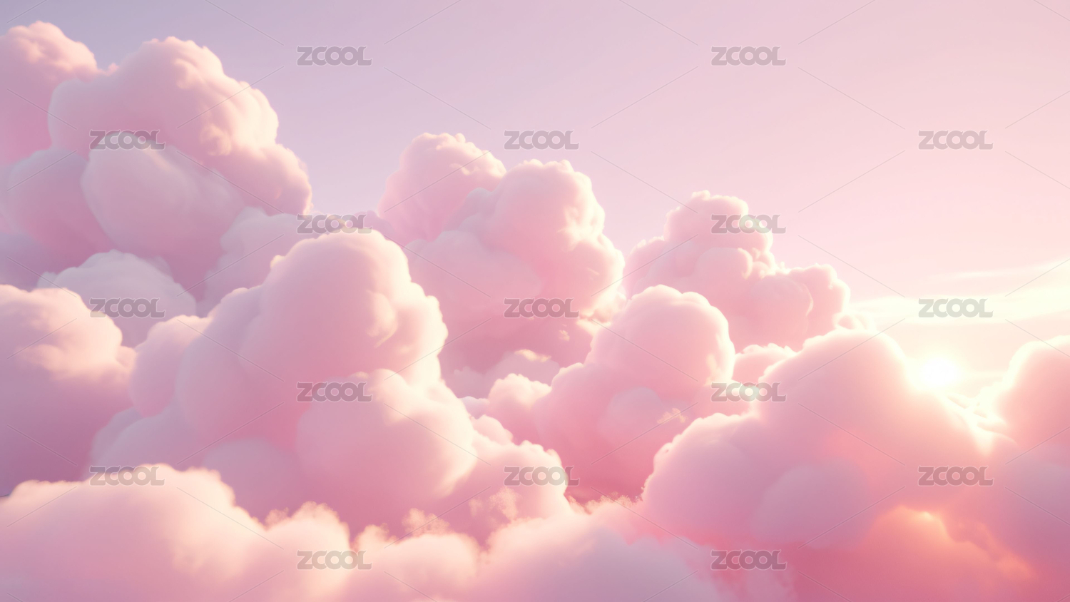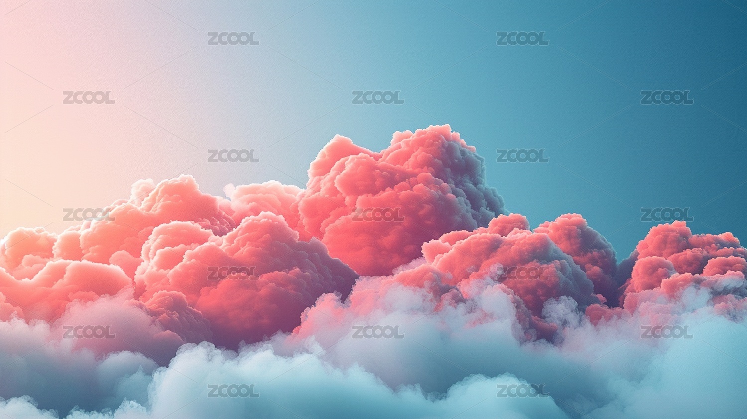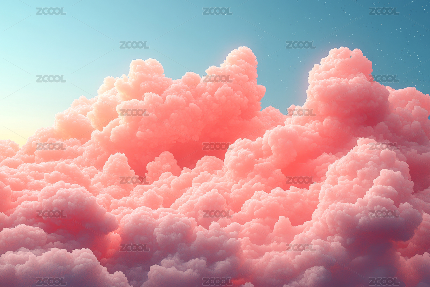蓝天背景下粉白云朵堆积成梦幻治愈的天空景