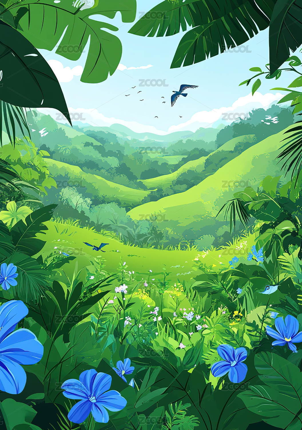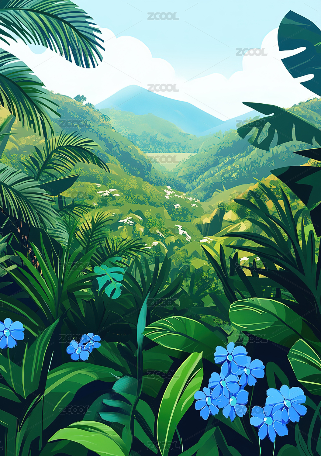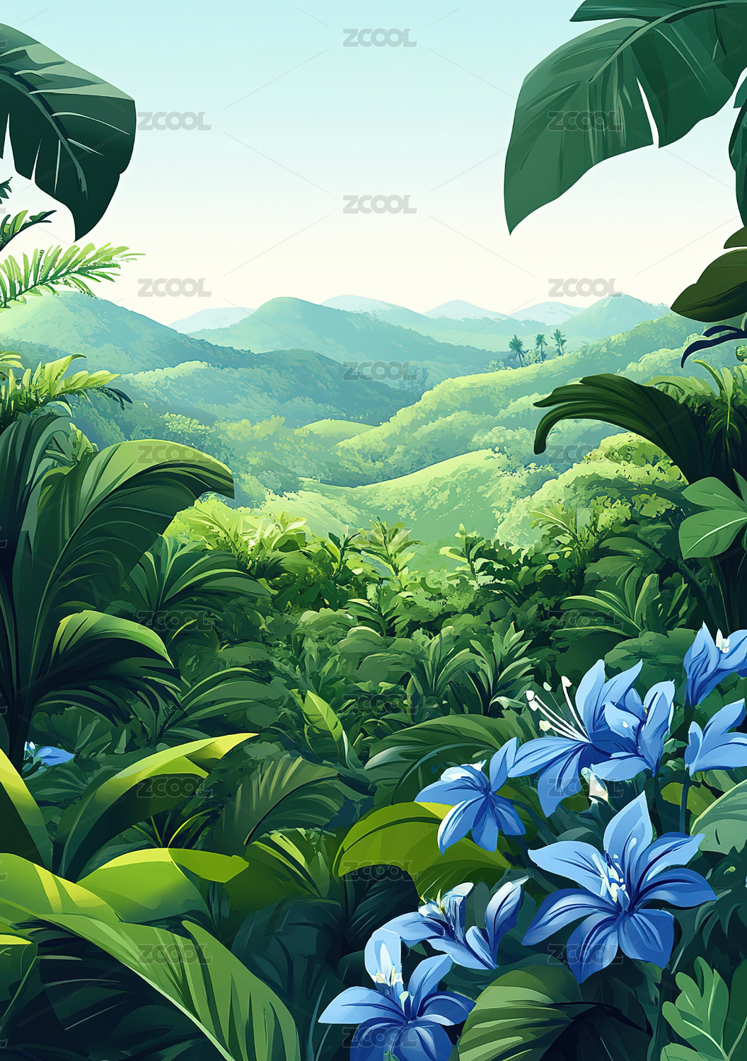 热带丛林山景插画