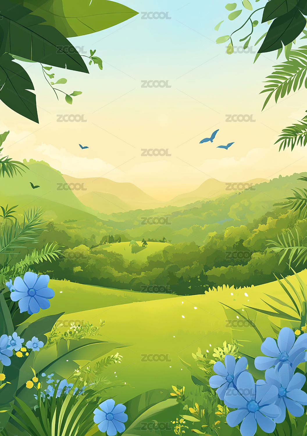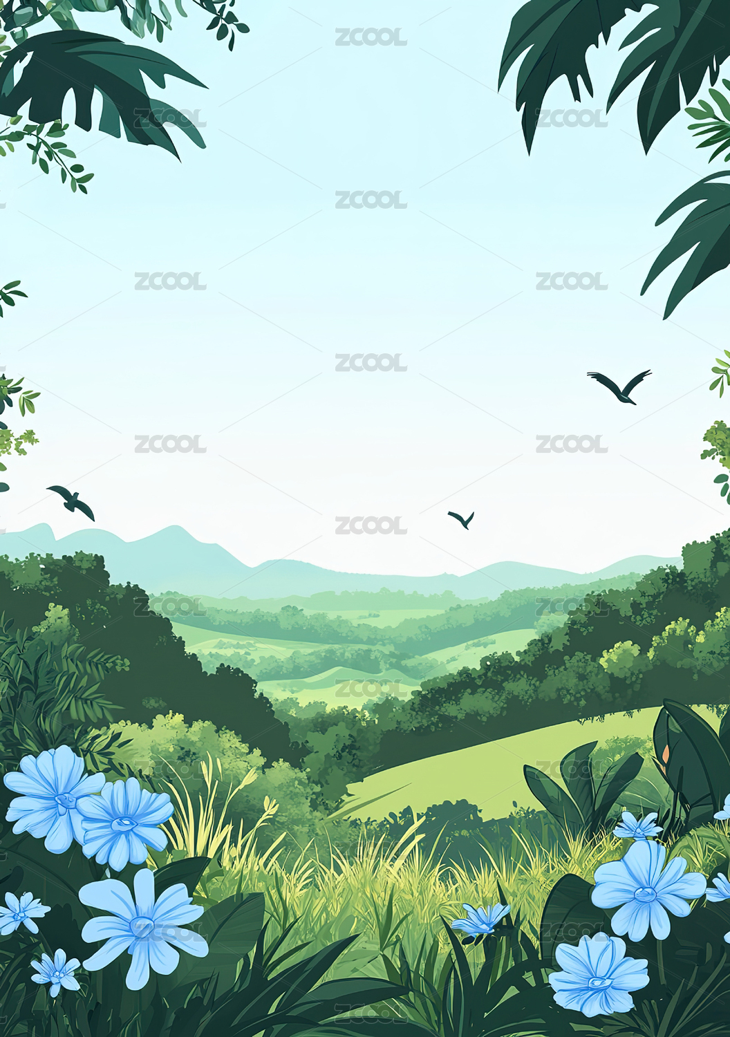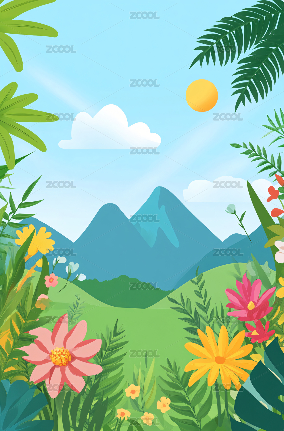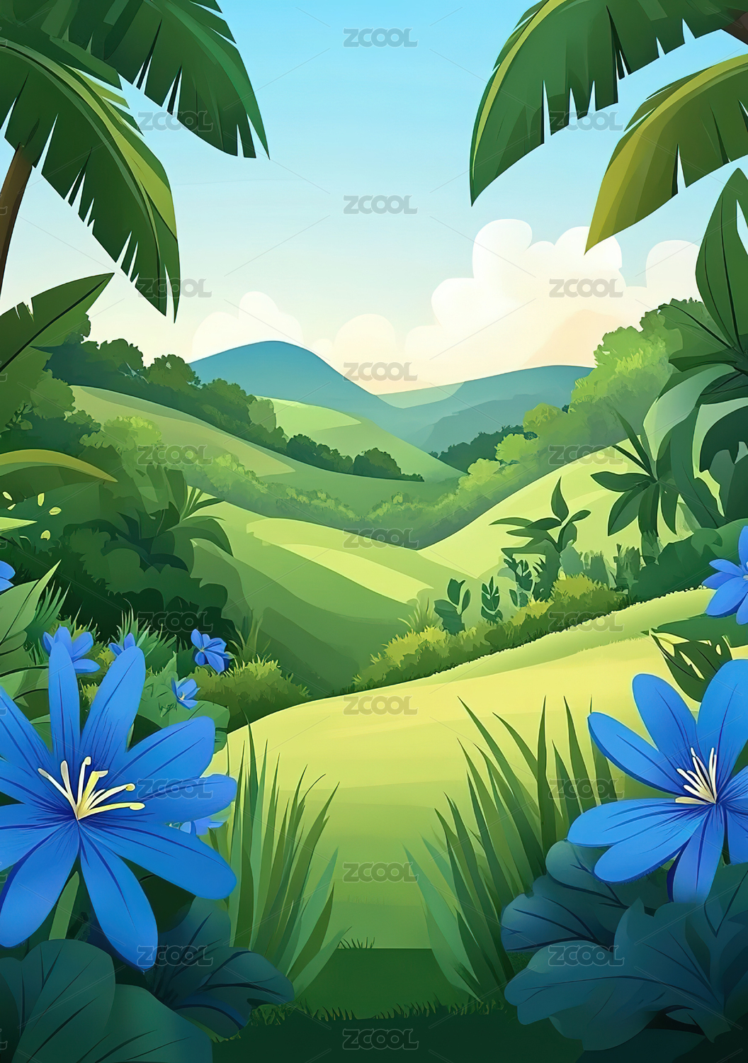 热带丛林山景插画