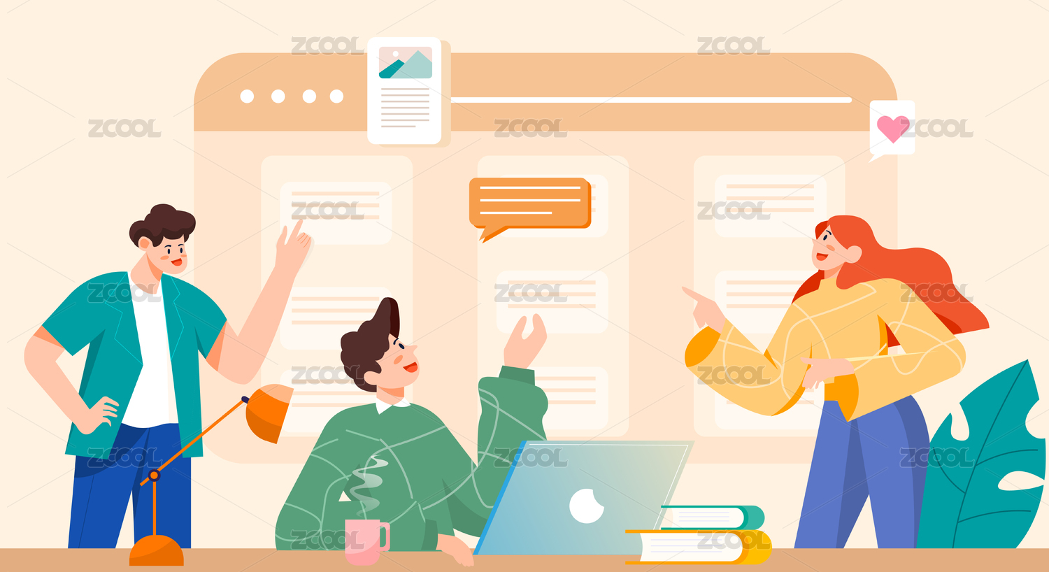虚拟的人物社交沟通概念商业扁平矢量手绘插