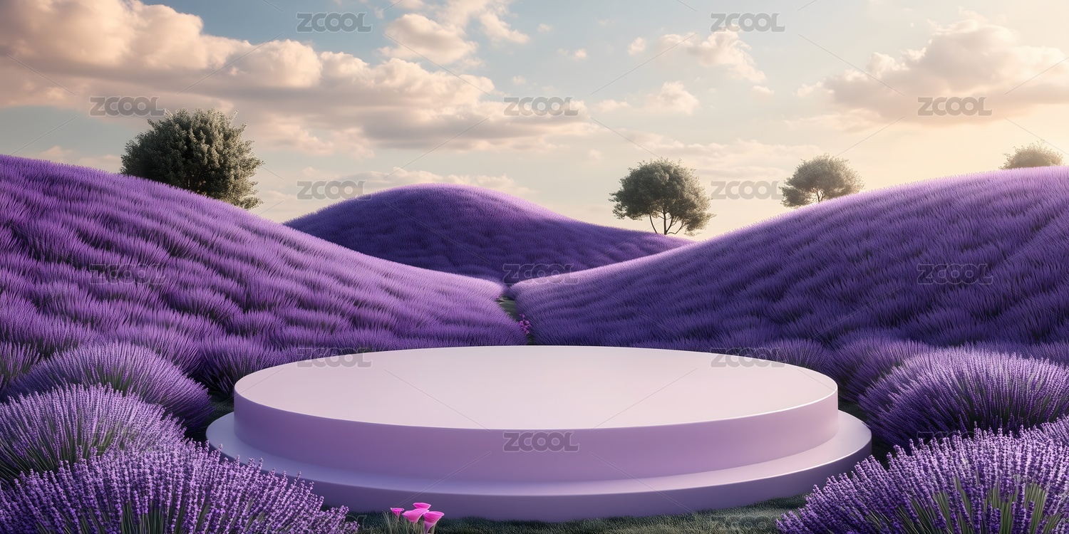 紫色薰衣草风景产品展示台