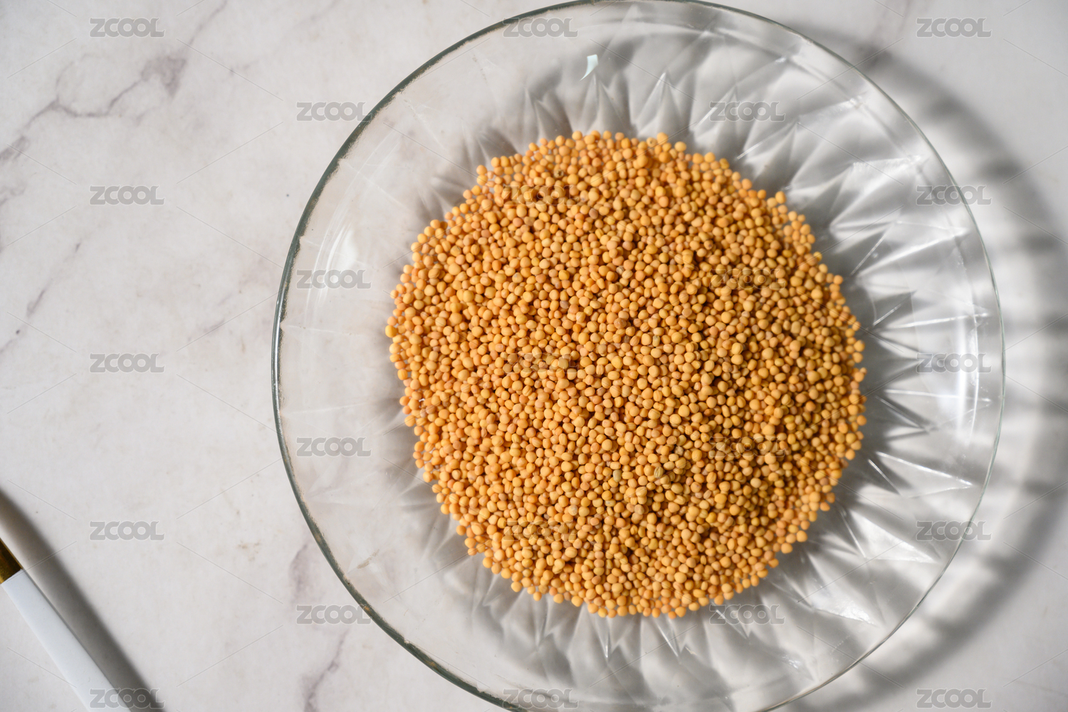 桌面上的盘子里的美味可口的黄芥子