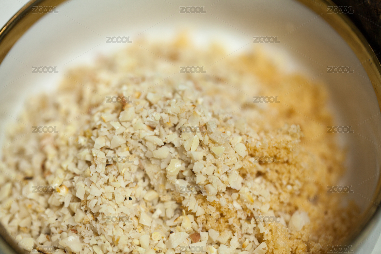 一碗调味佐料花生碎和碎虾条