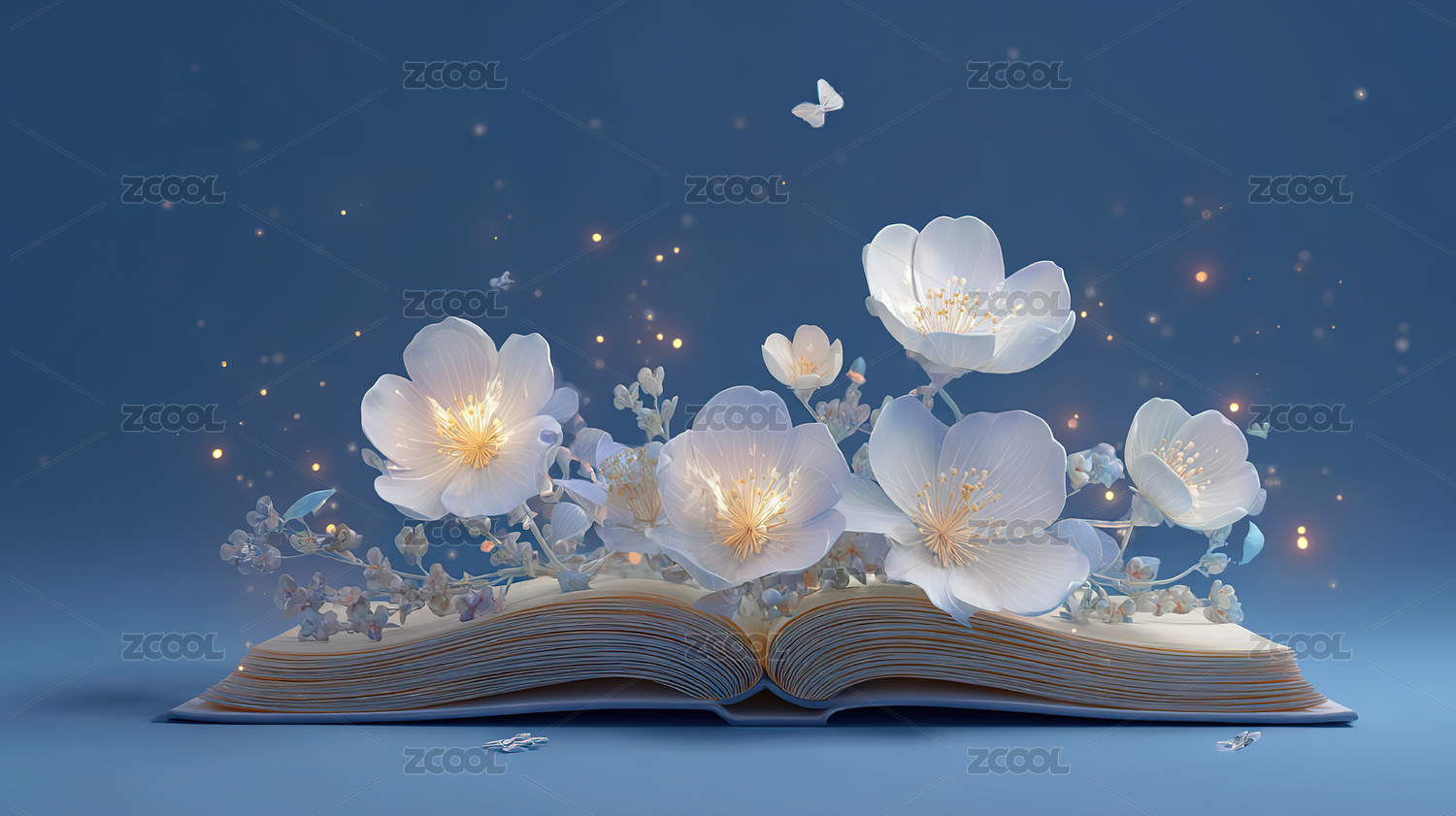 书本,花卉,知识,学习,阅读,阳光,清新,生长,叶子,环绕