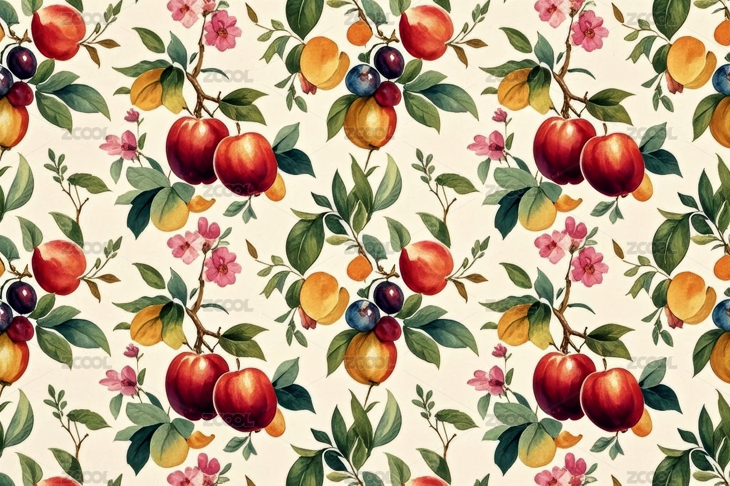 手绘水彩可爱水果植物背景底纹图案