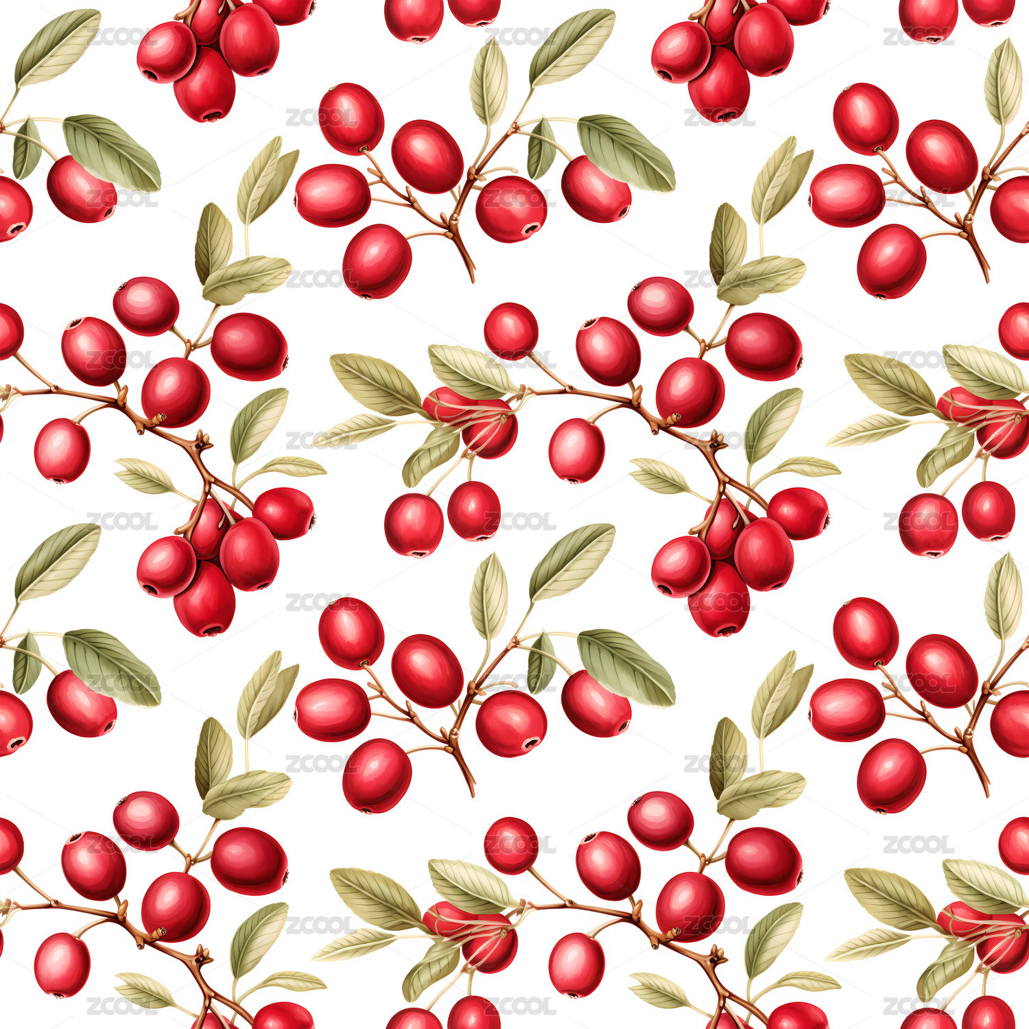 山楂无缝平铺四方连续纹样图案背景