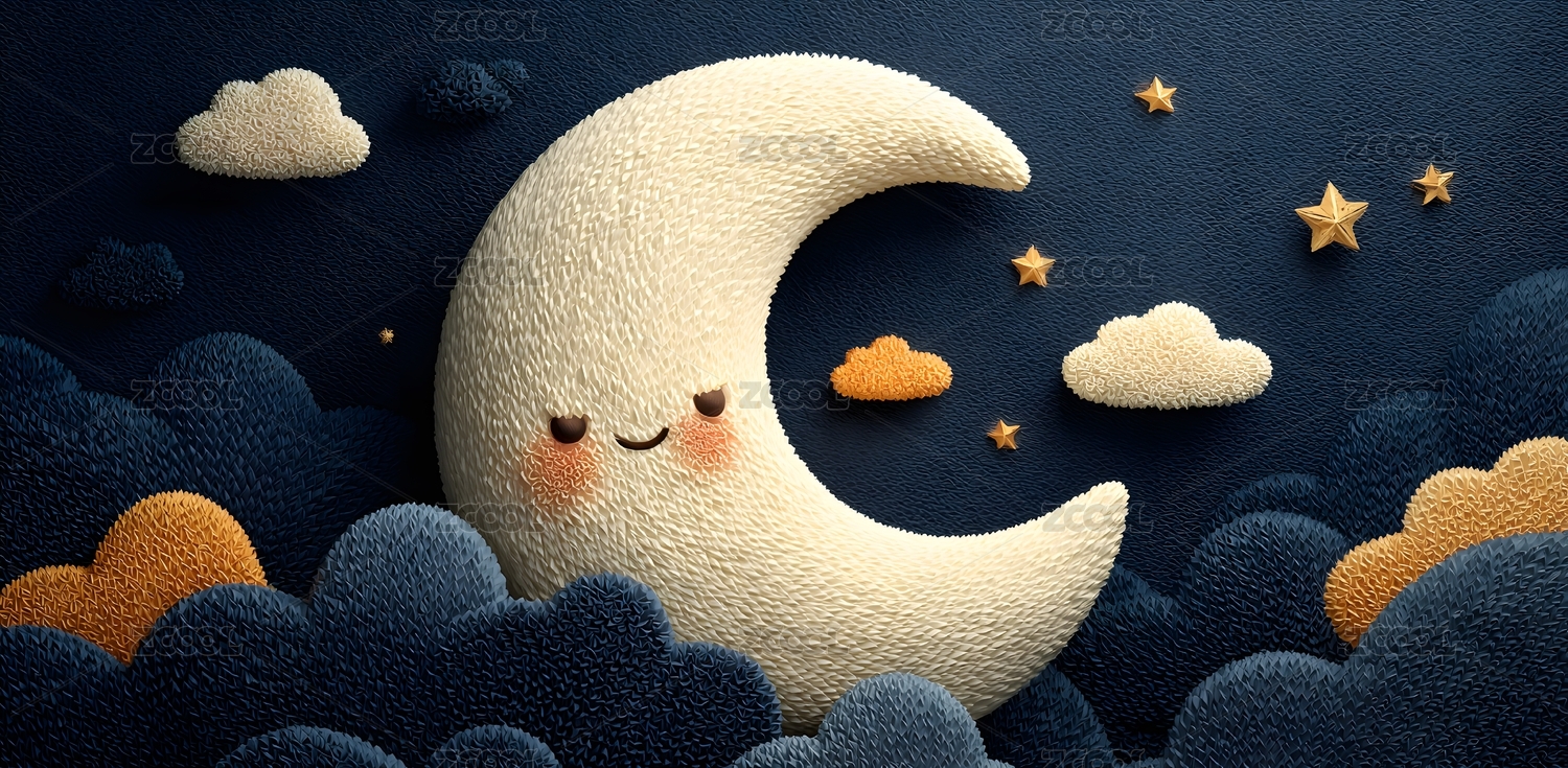 月亮,睡眠,可爱,毛毡,星星,夜晚,安静,白色,保护,保健