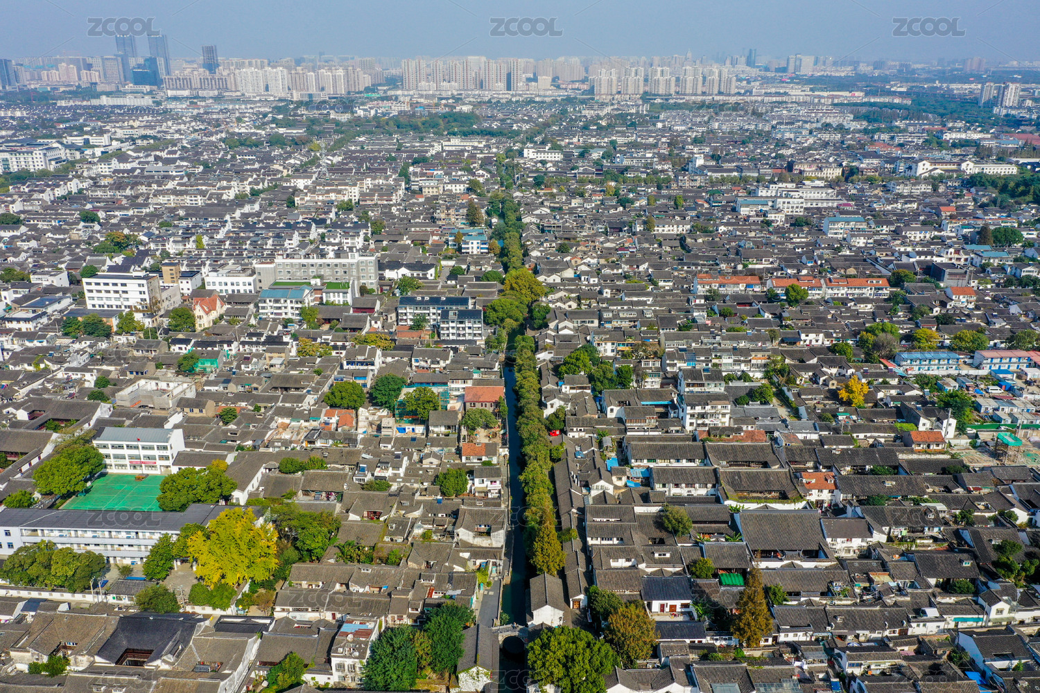 航拍苏州平江历史文化街区平江路白墙黛瓦