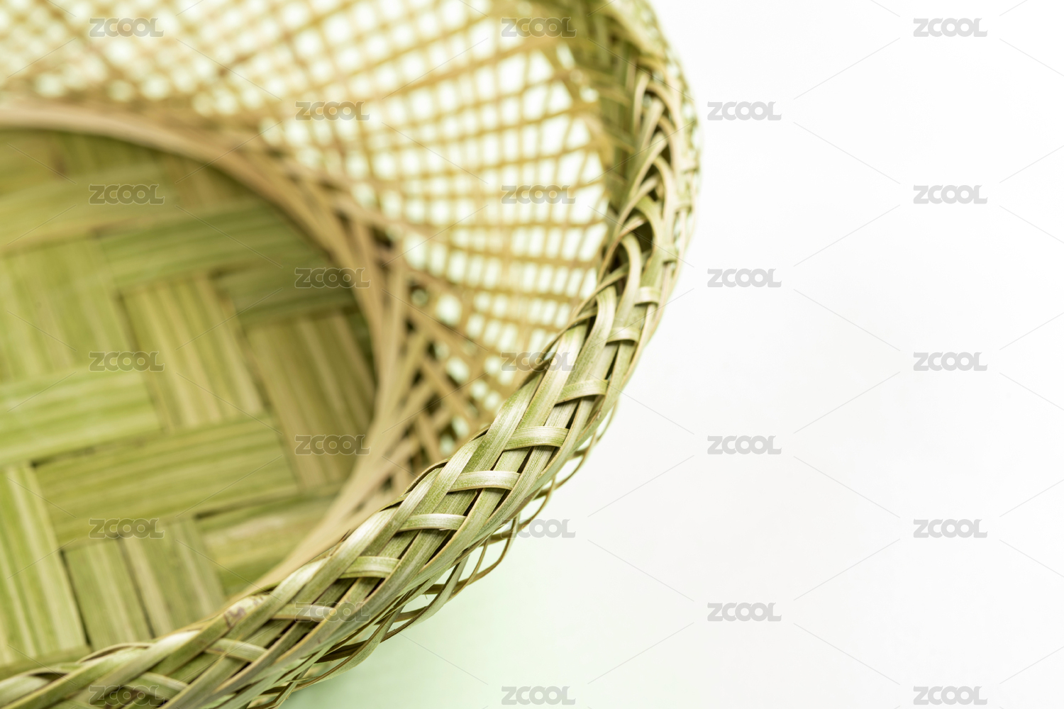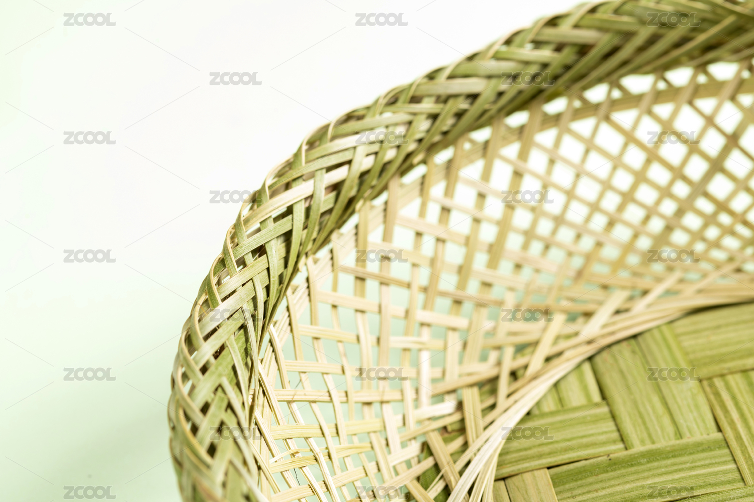 制作精美的竹编制品圆簸箕摆放在桌面上