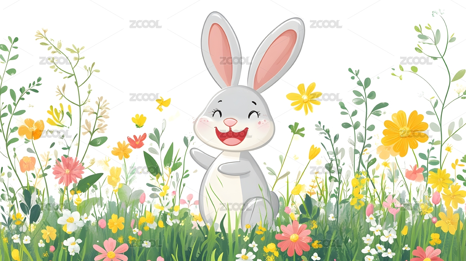 兔子彩色花卉插图装饰复活节快乐贺卡