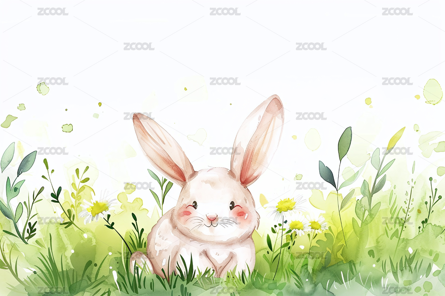 白天白底草原卧姿野兔白兔特写插画绘画手绘