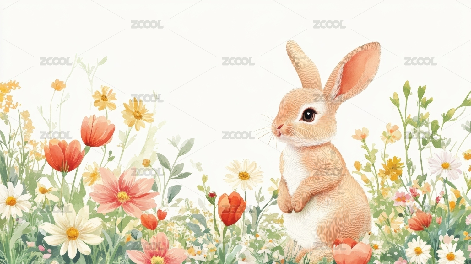 花纹,纹样,装饰,插画,印花,花丛,兔子,植物,可爱,水彩