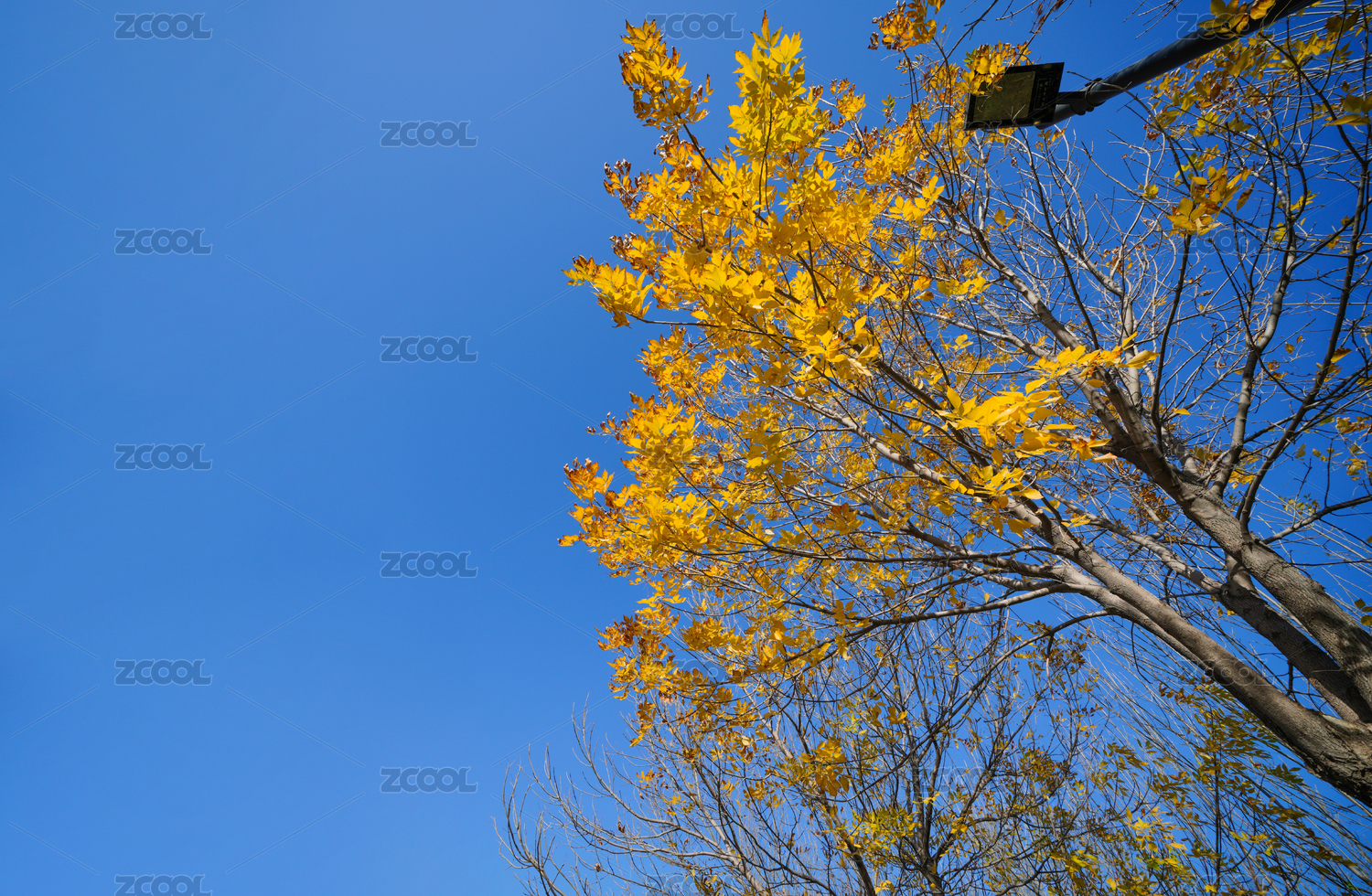 秋天,蓝天,天空,映衬,背景,漂亮,黄色,金黄,颜色,树叶