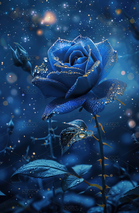 深蓝玫瑰在星空下的绽放