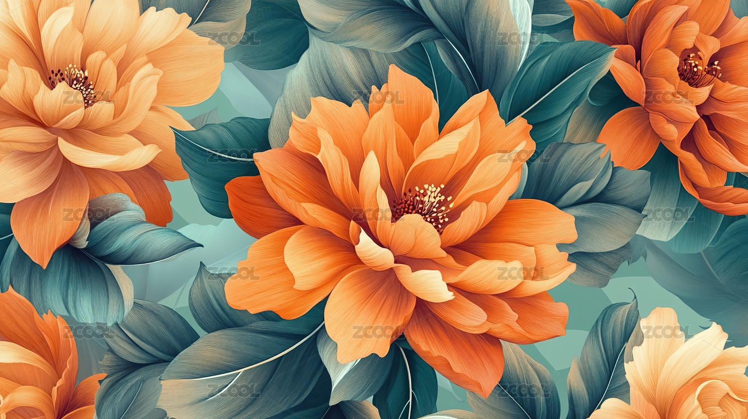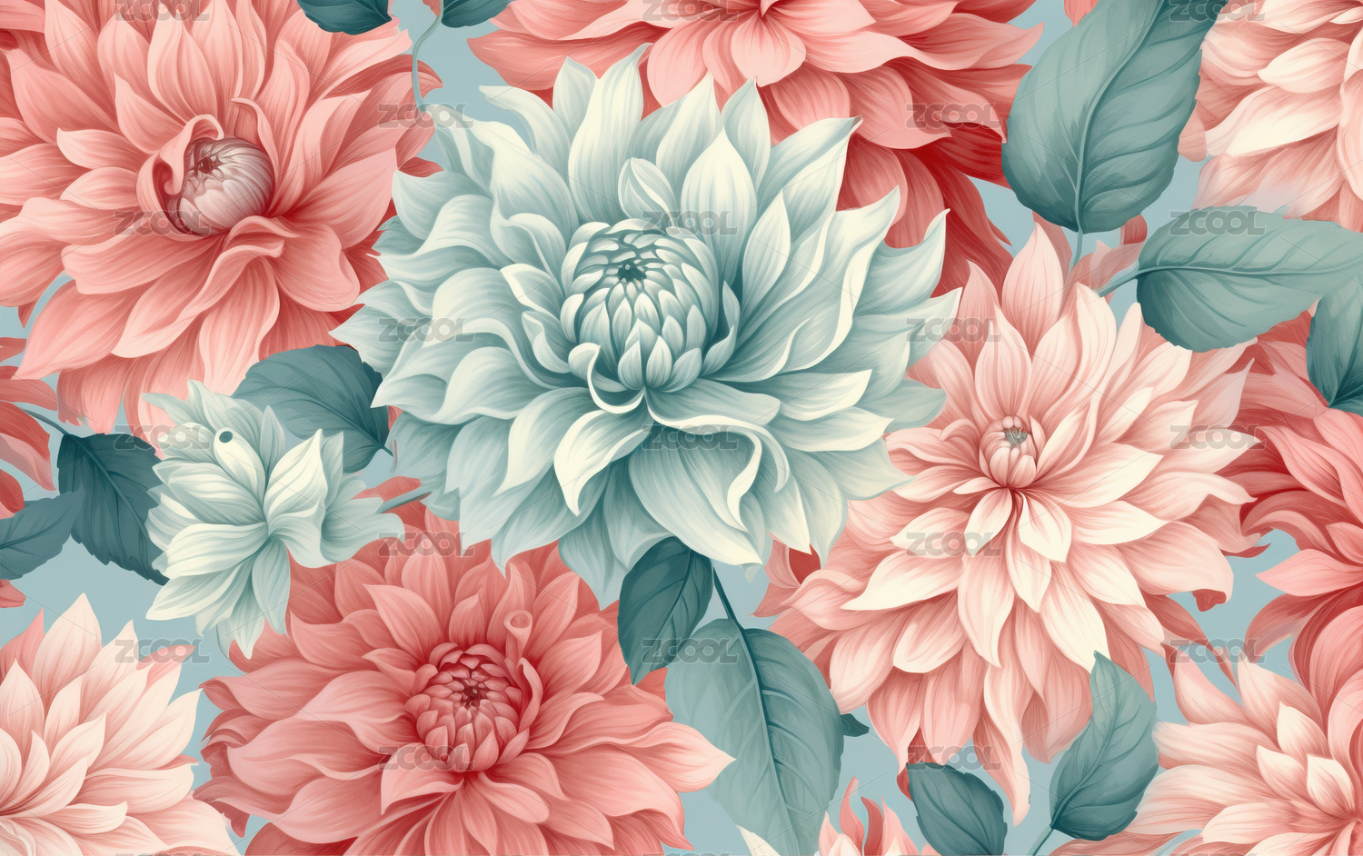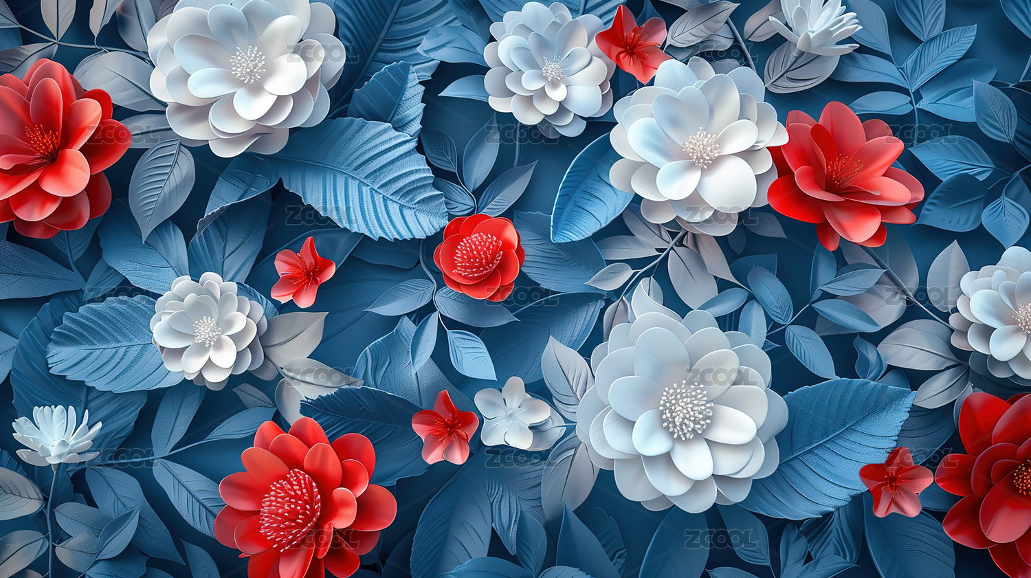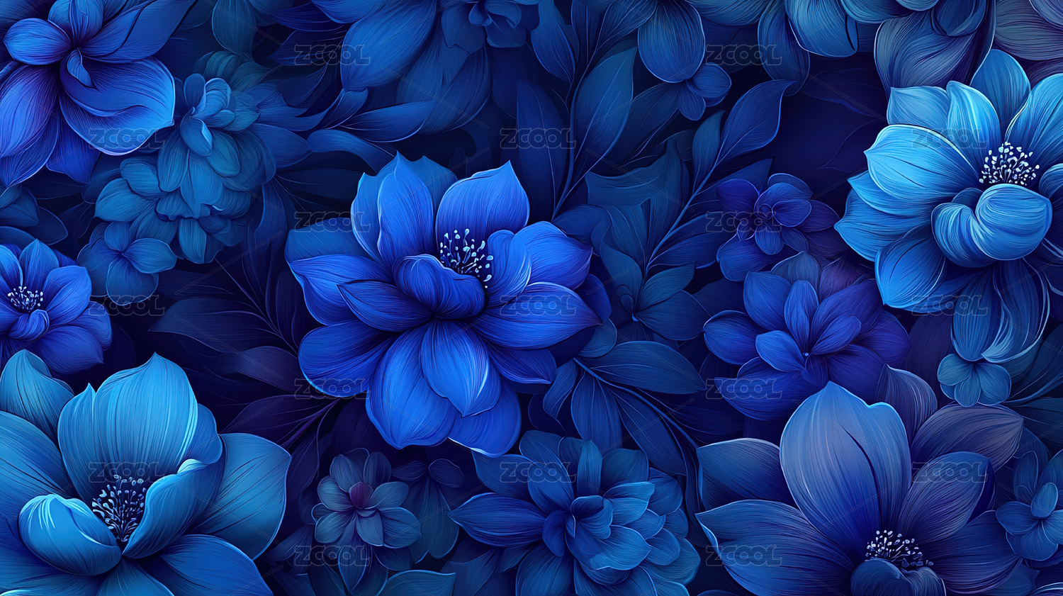 蓝白陶瓷风格花朵植物图案插画海报背景