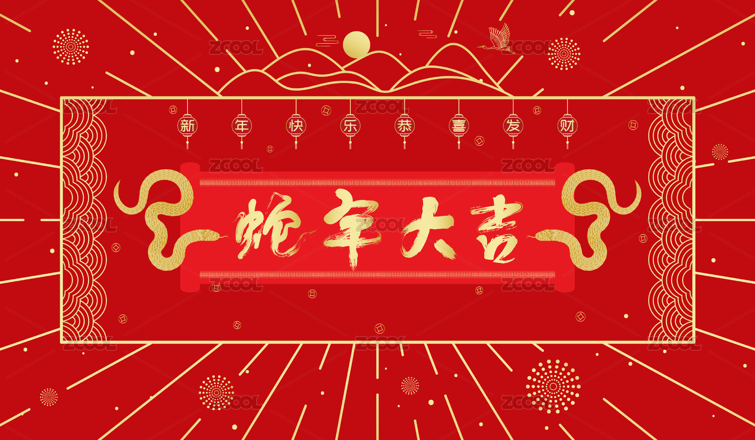中国风手写毛笔蛇年春联横幅吉祥标语