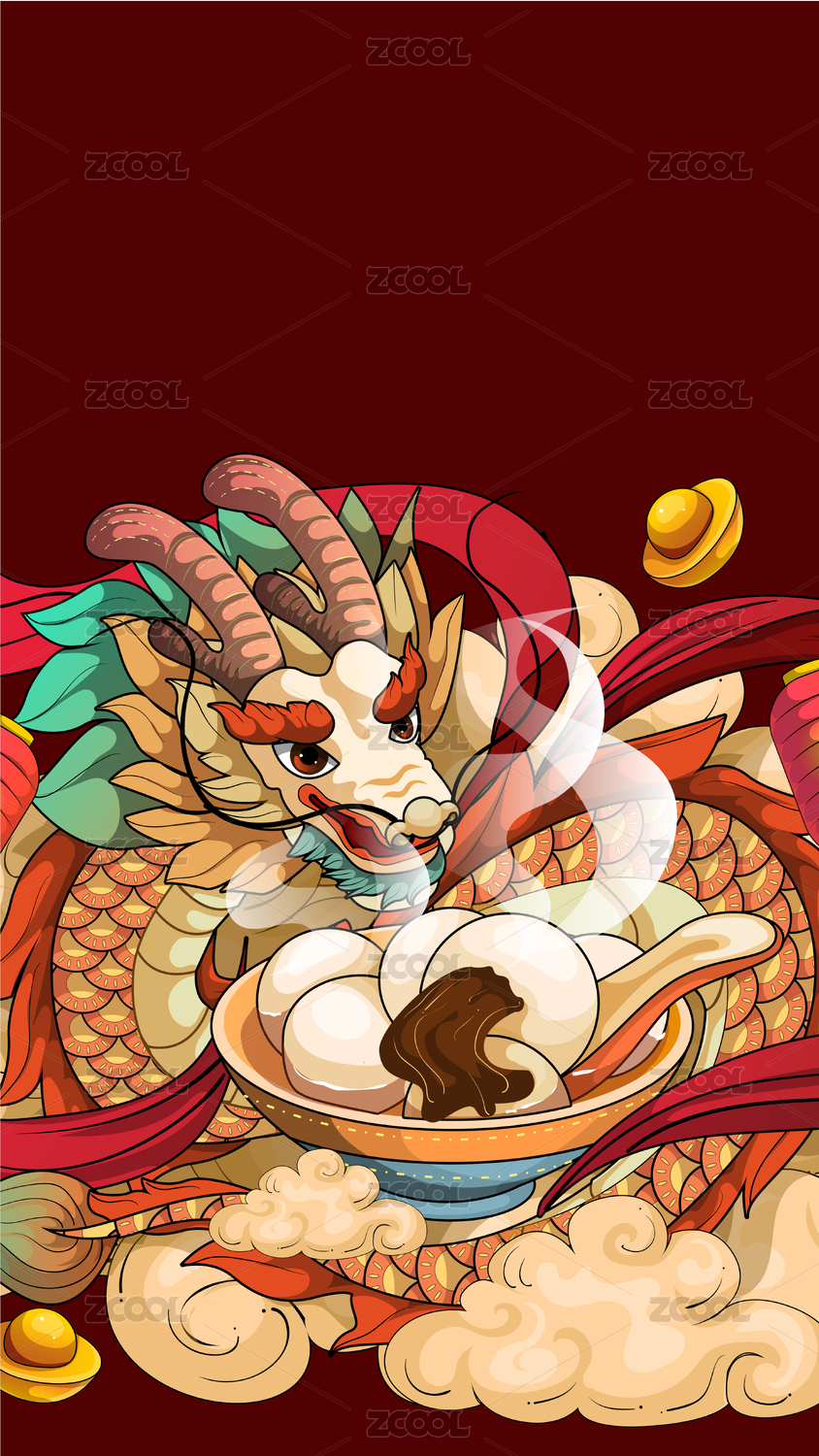 红色大气传统节日元宵节汤圆手绘矢量插画