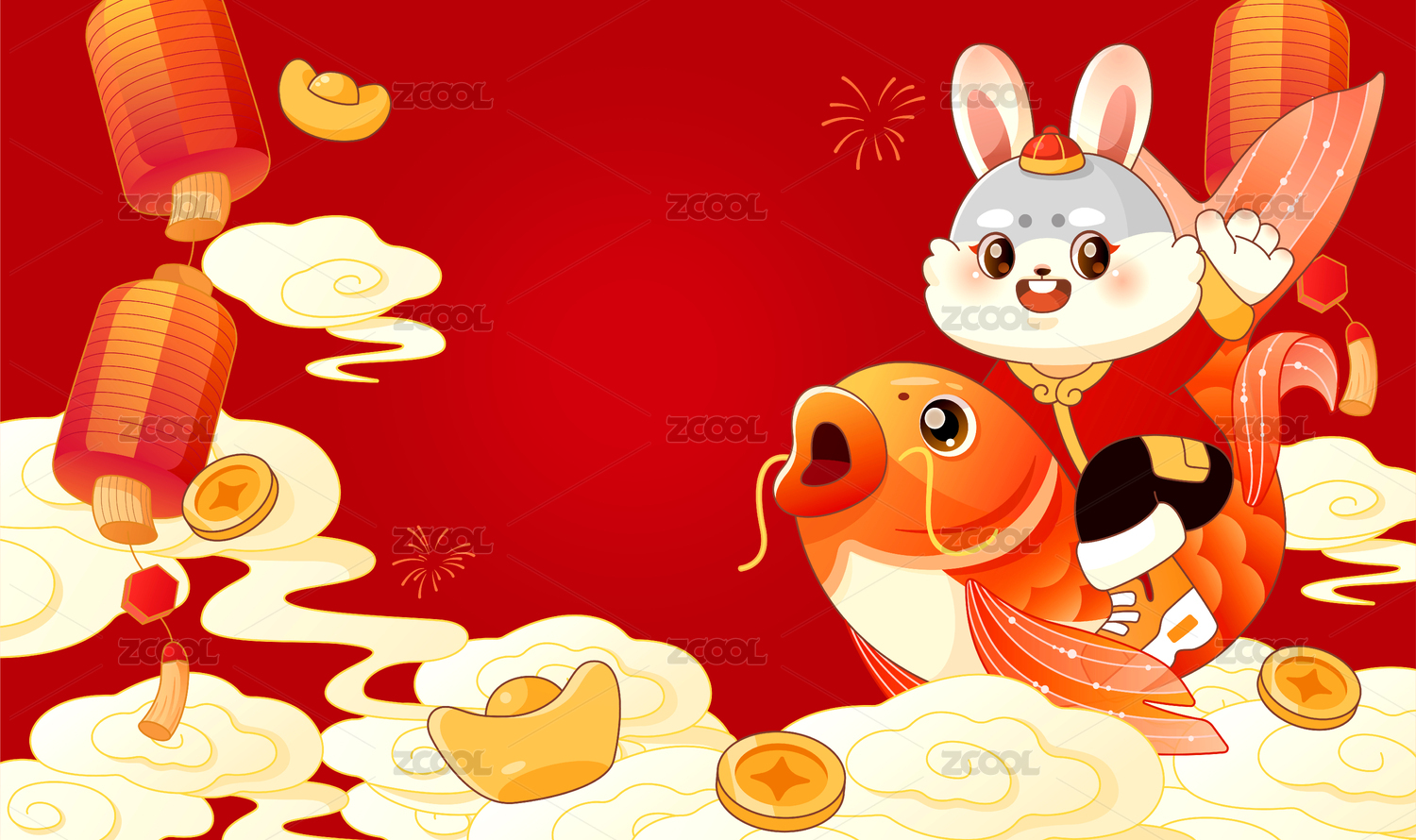 国朝兔年新年春节矢量插画