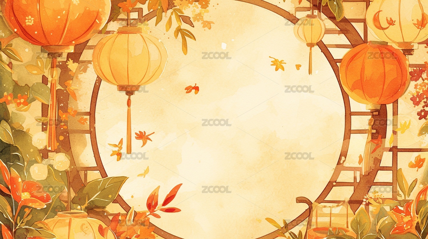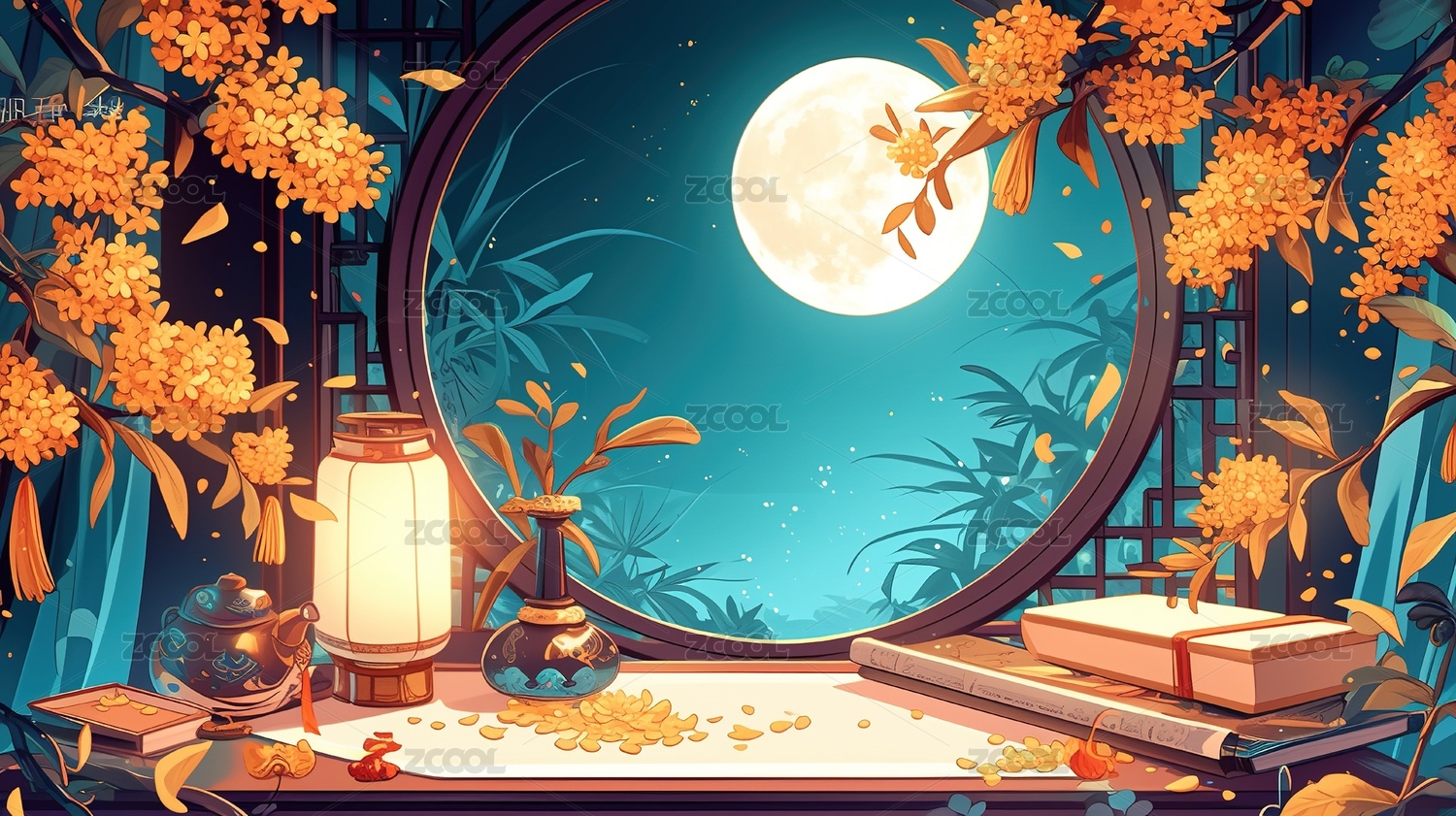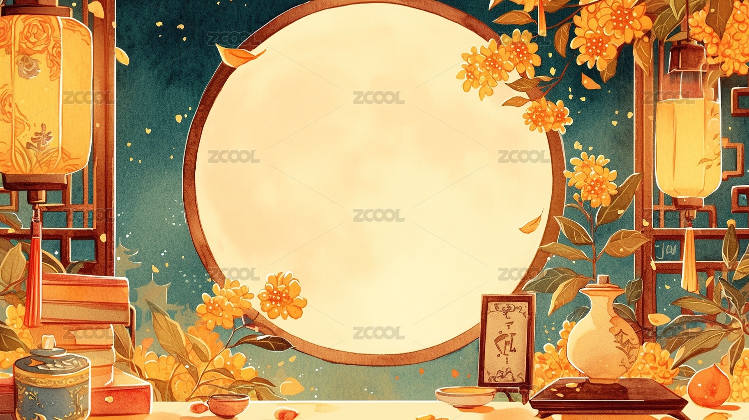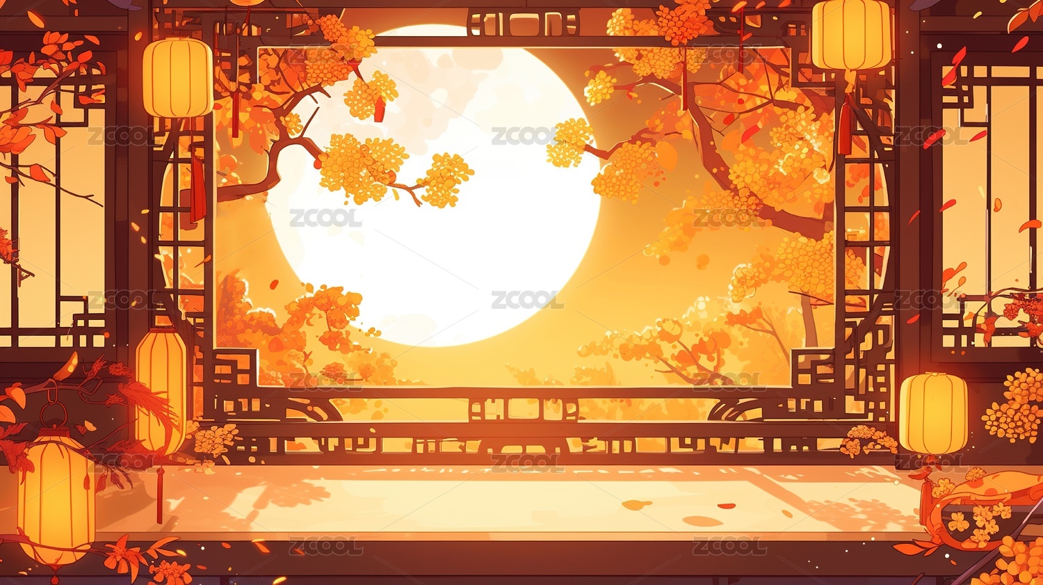 满月,背景,灯笼,中秋节,室内,季节,秋天,留白,桂花,古代窗户