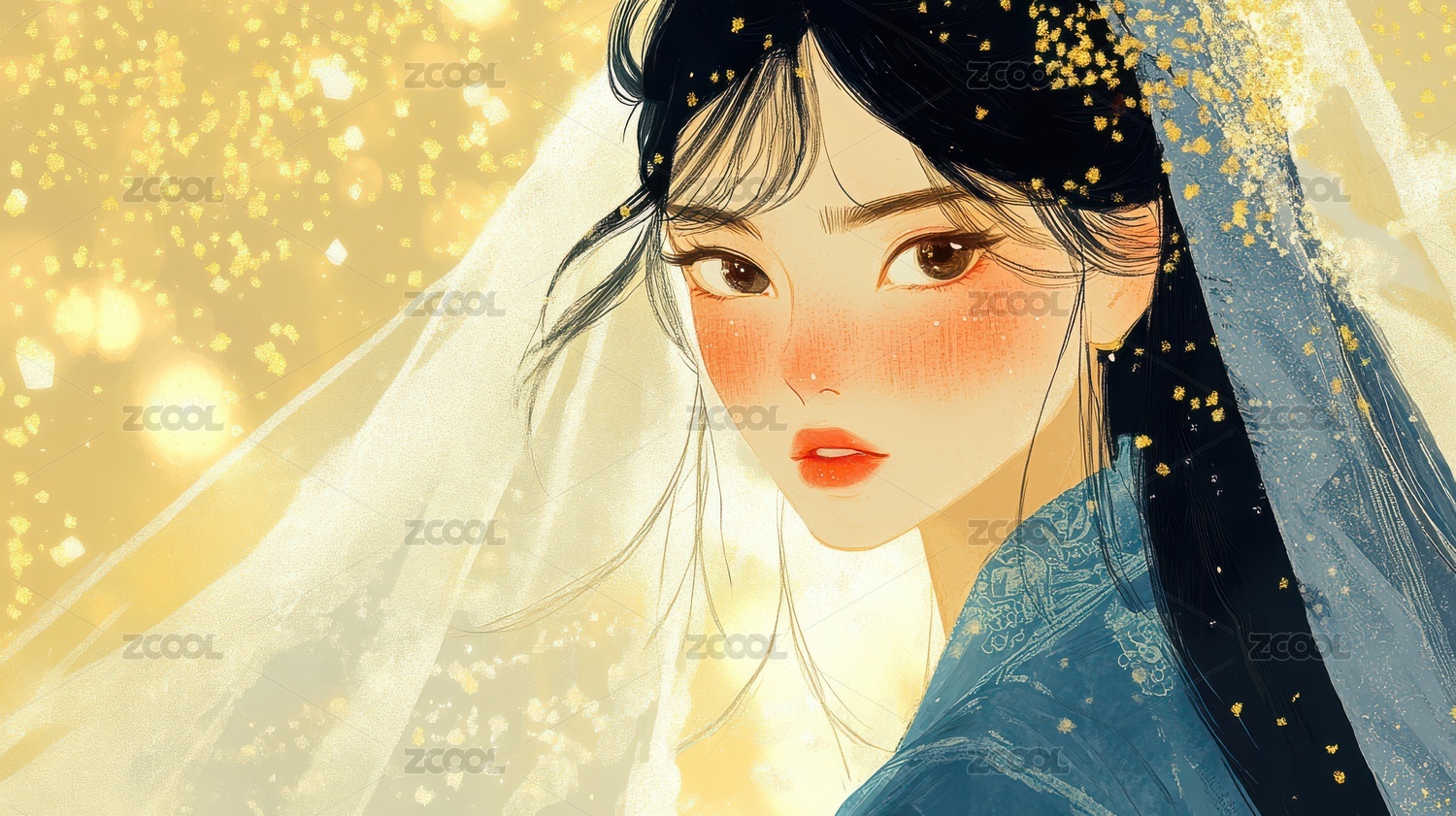 清新复古稻田戴着草帽的时尚女孩插画背景