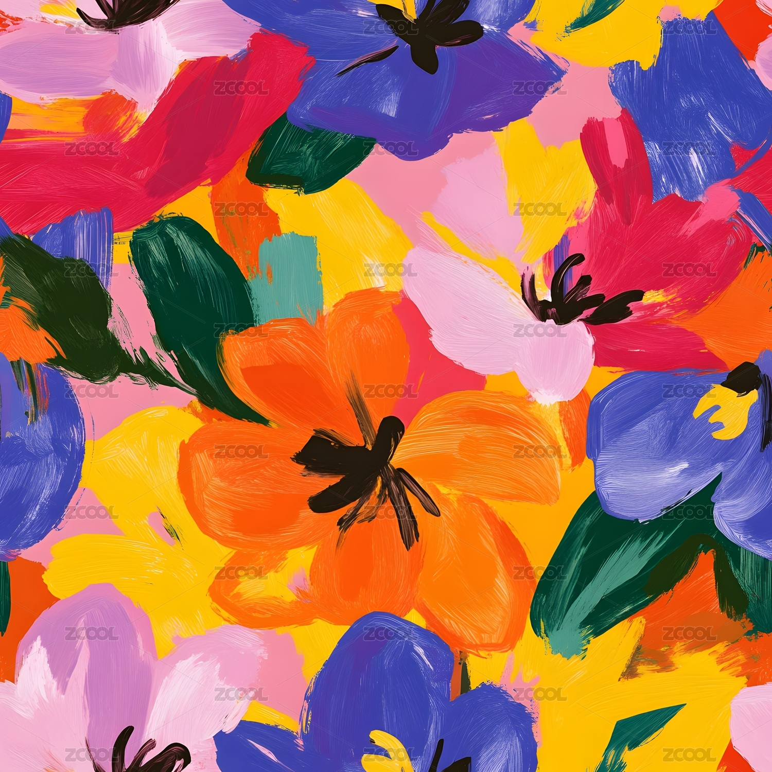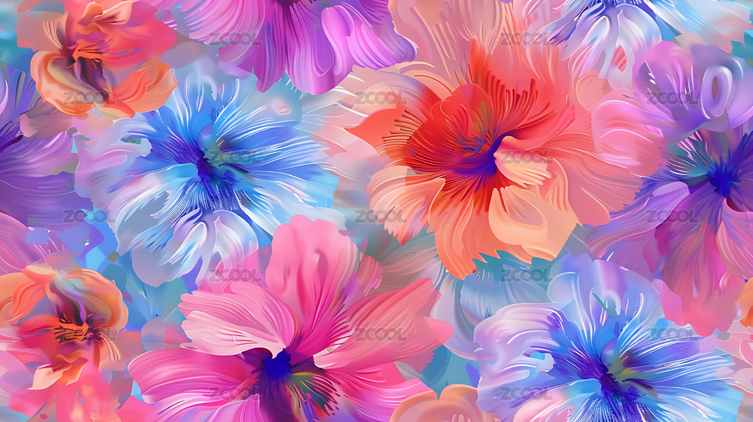鲜艳的色彩抽象油画花朵艺术感装饰背景
