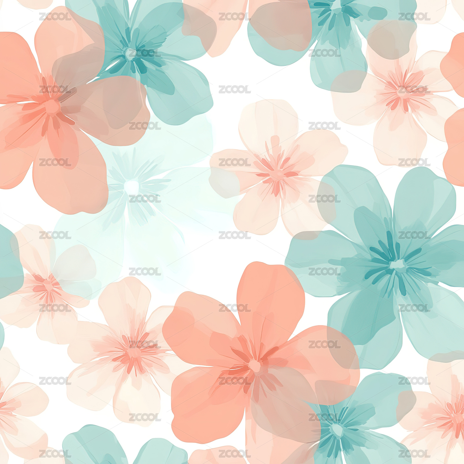 四方连续花朵印花