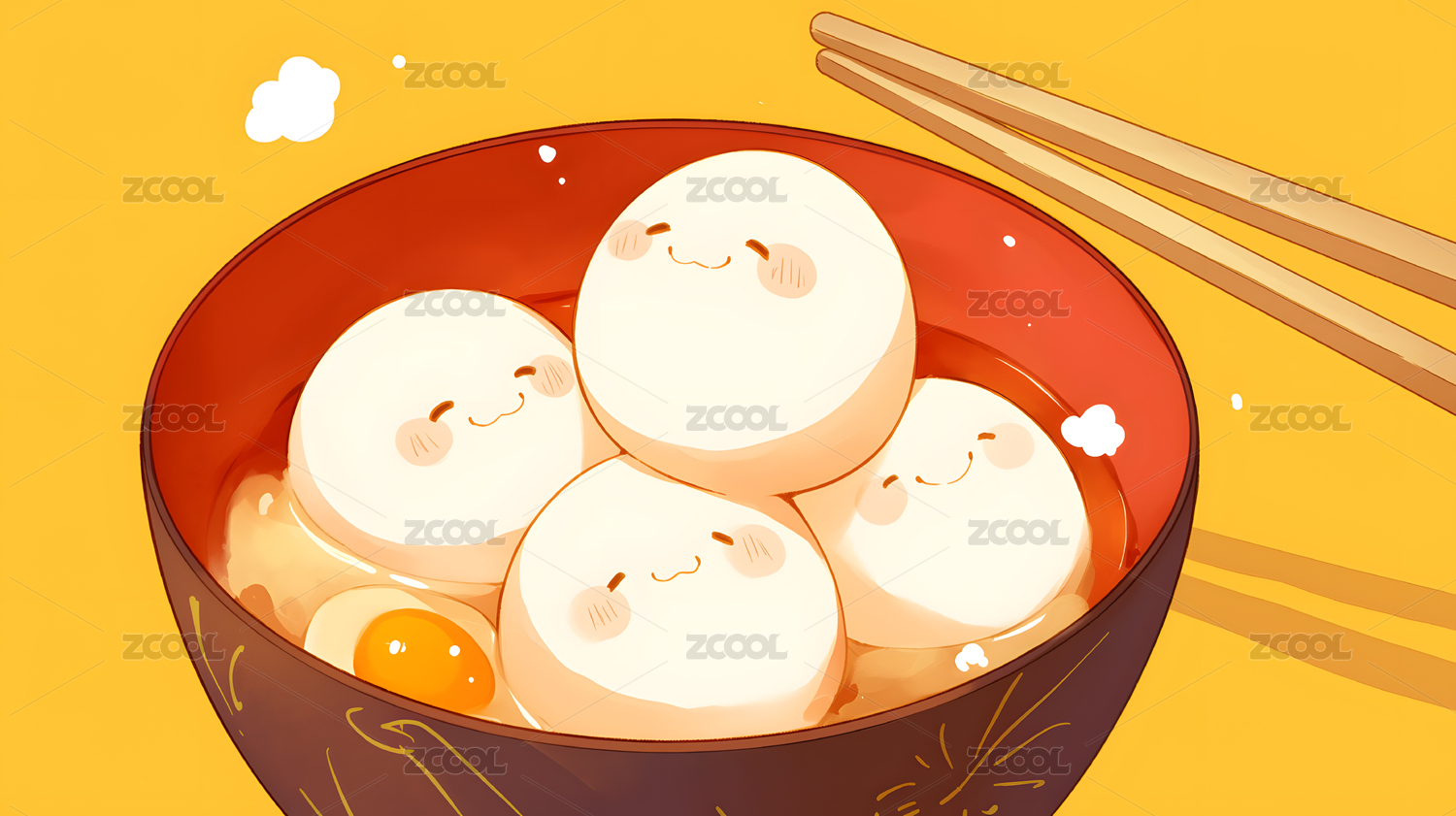 食物,汤圆,元宵节,糖水,甜水,甜食,点心,线条风,元宵