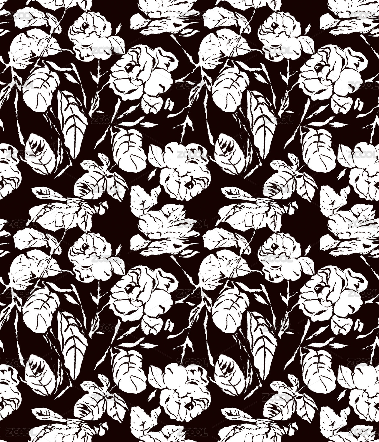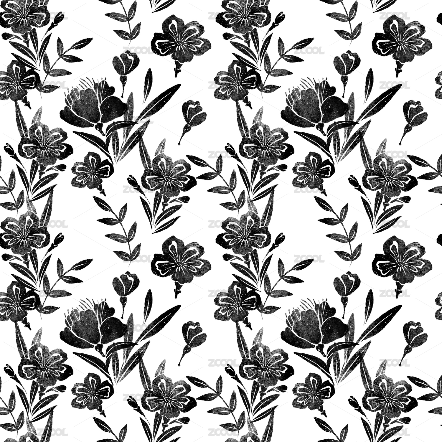 圣诞玫瑰冬青红果花朵黑白无缝图案