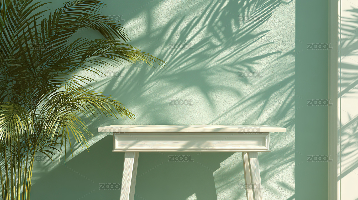 木质展台与棕榈叶