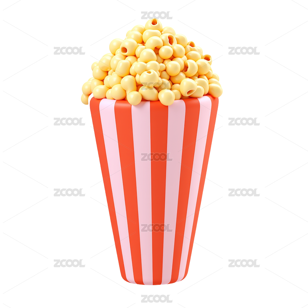 抽象卡通风格爆米花桶3D渲染,爆米花3D