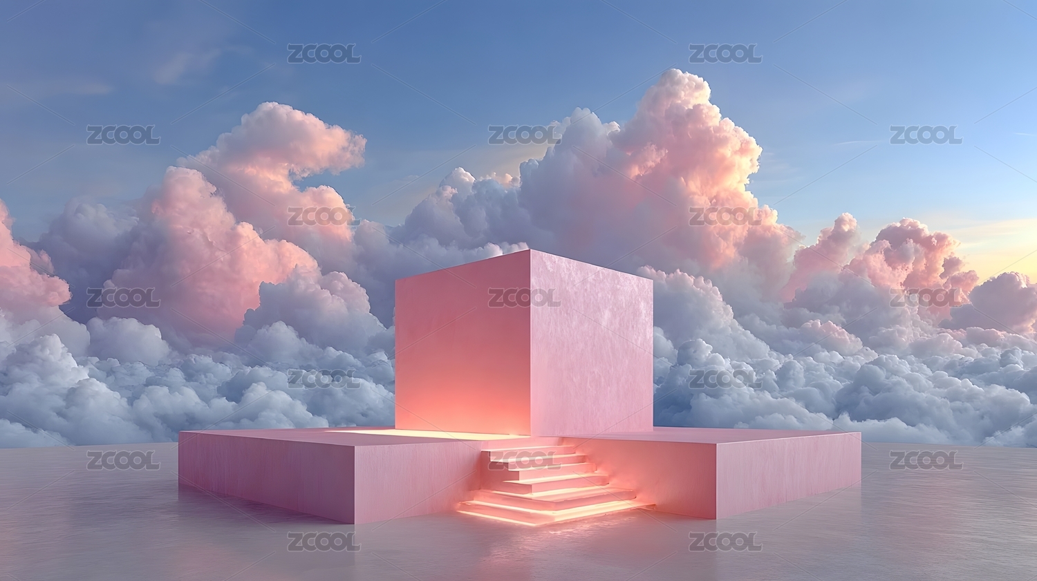 云中粉色立方体幻想场景