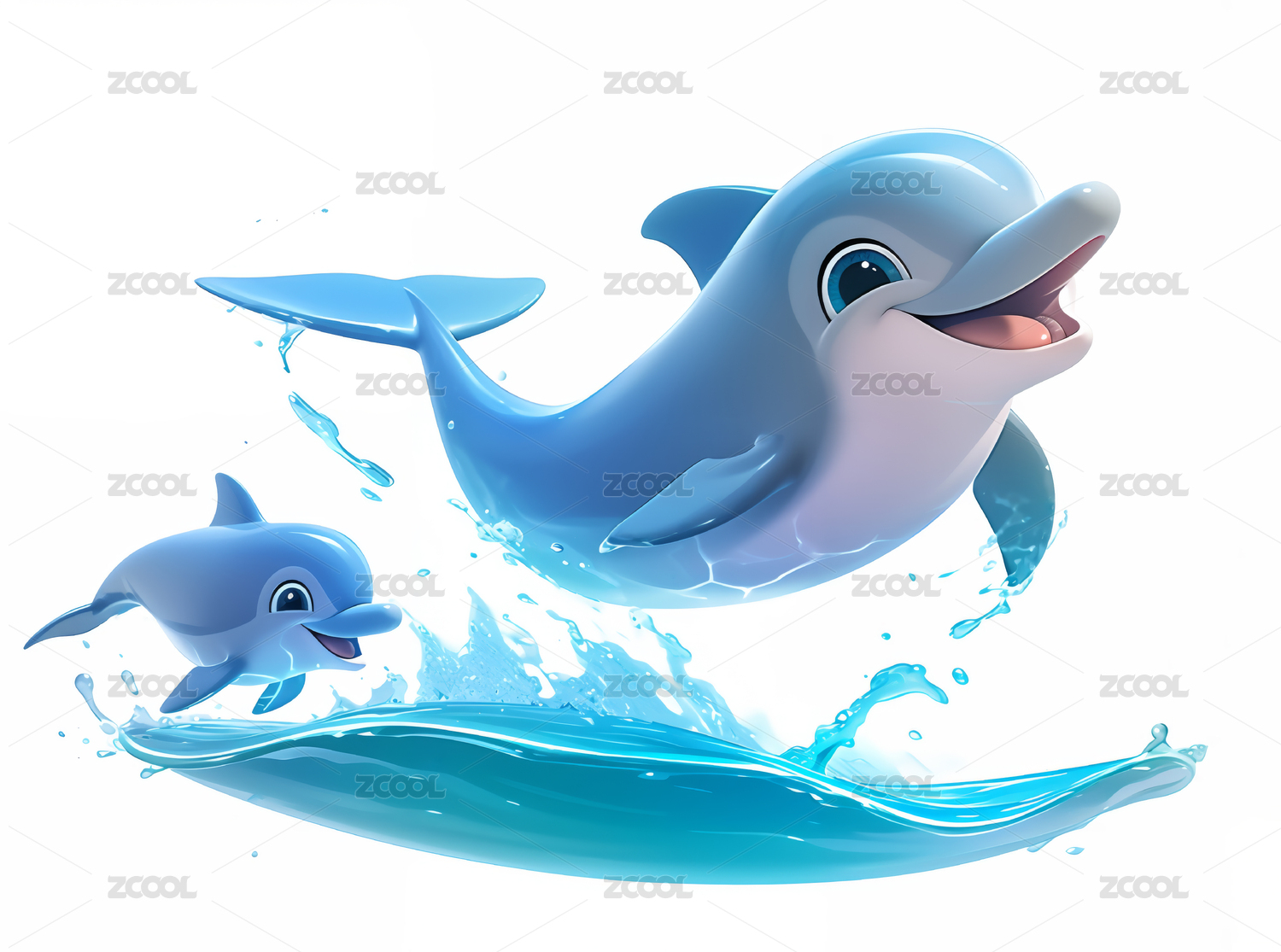 3D卡通海浪上的海豚