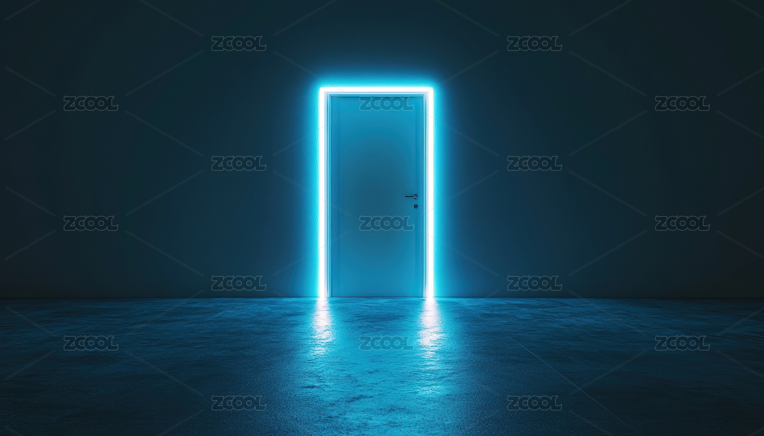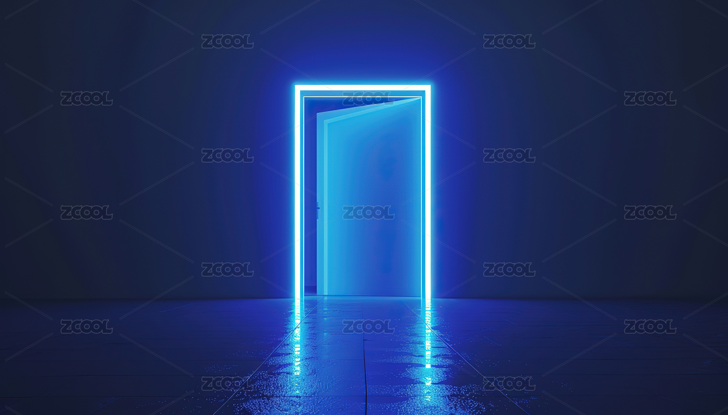 蓝色霓虹门在黑暗中的未来感场景