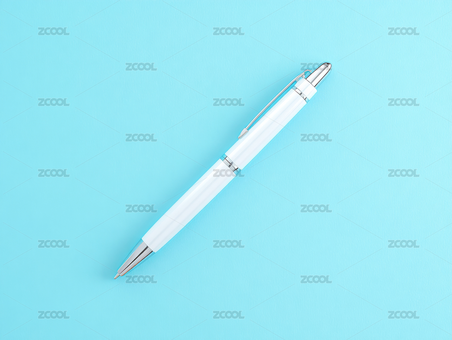简洁白色笔置于蓝面