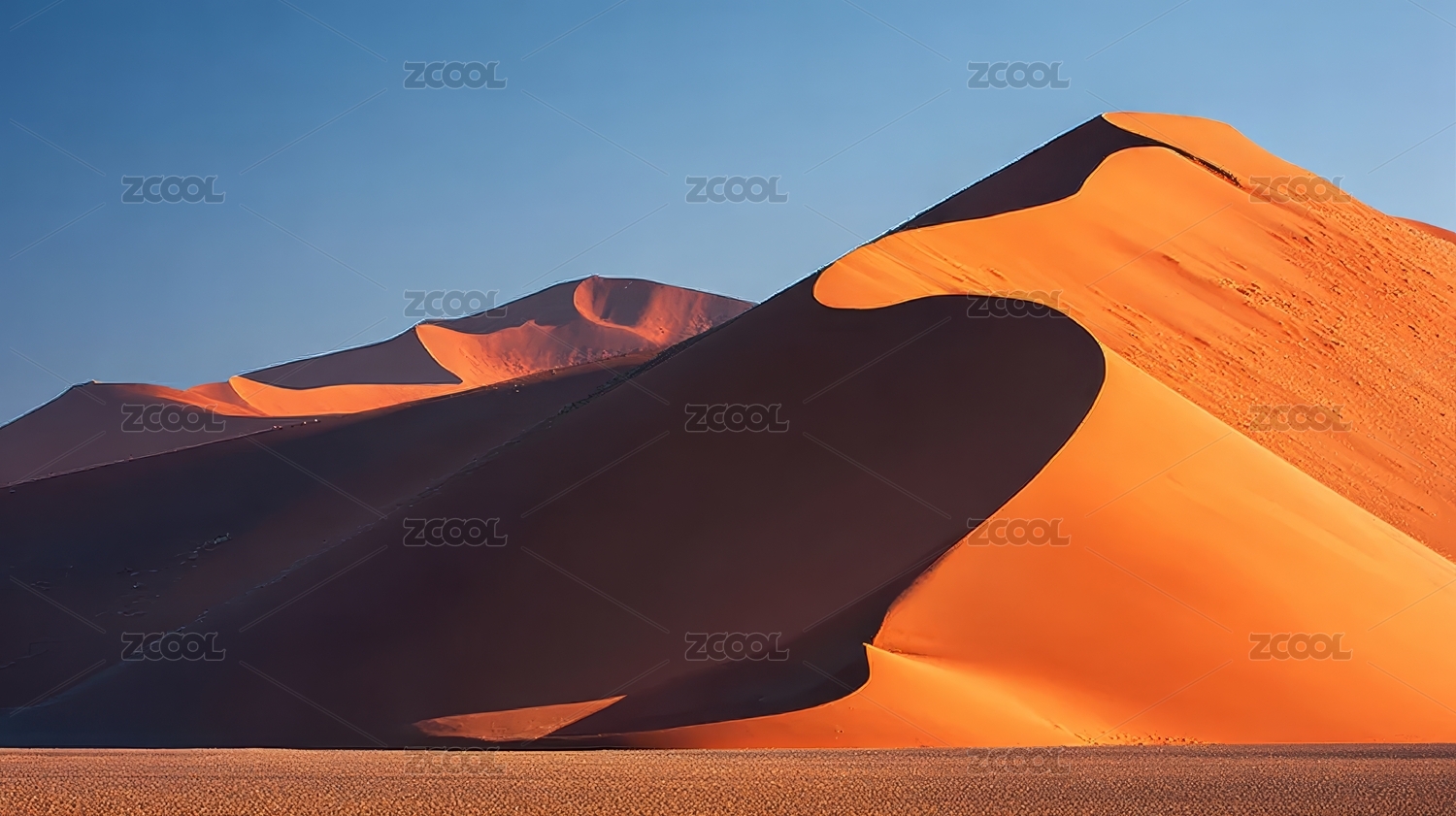 沙漠沙丘在阳光下呈现橙色阴影