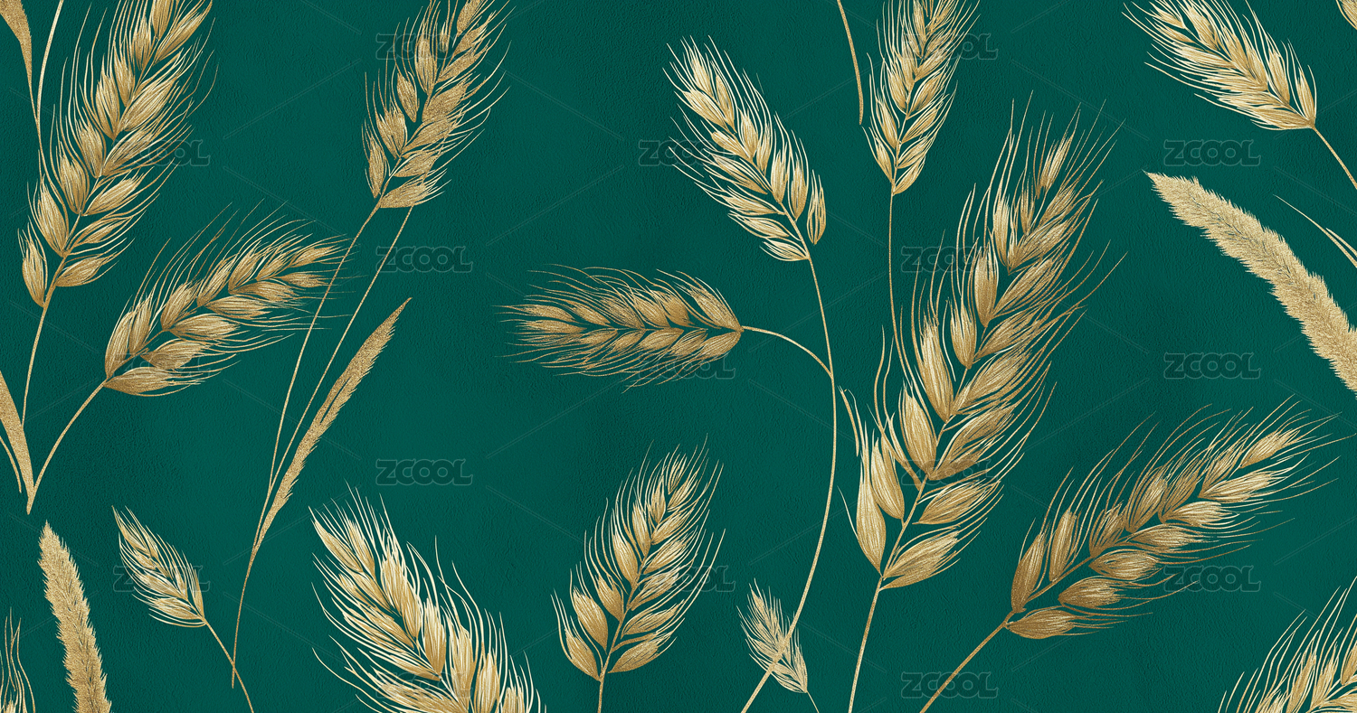 麦田成熟的金黄色饱满麦穗四方连续循环图案