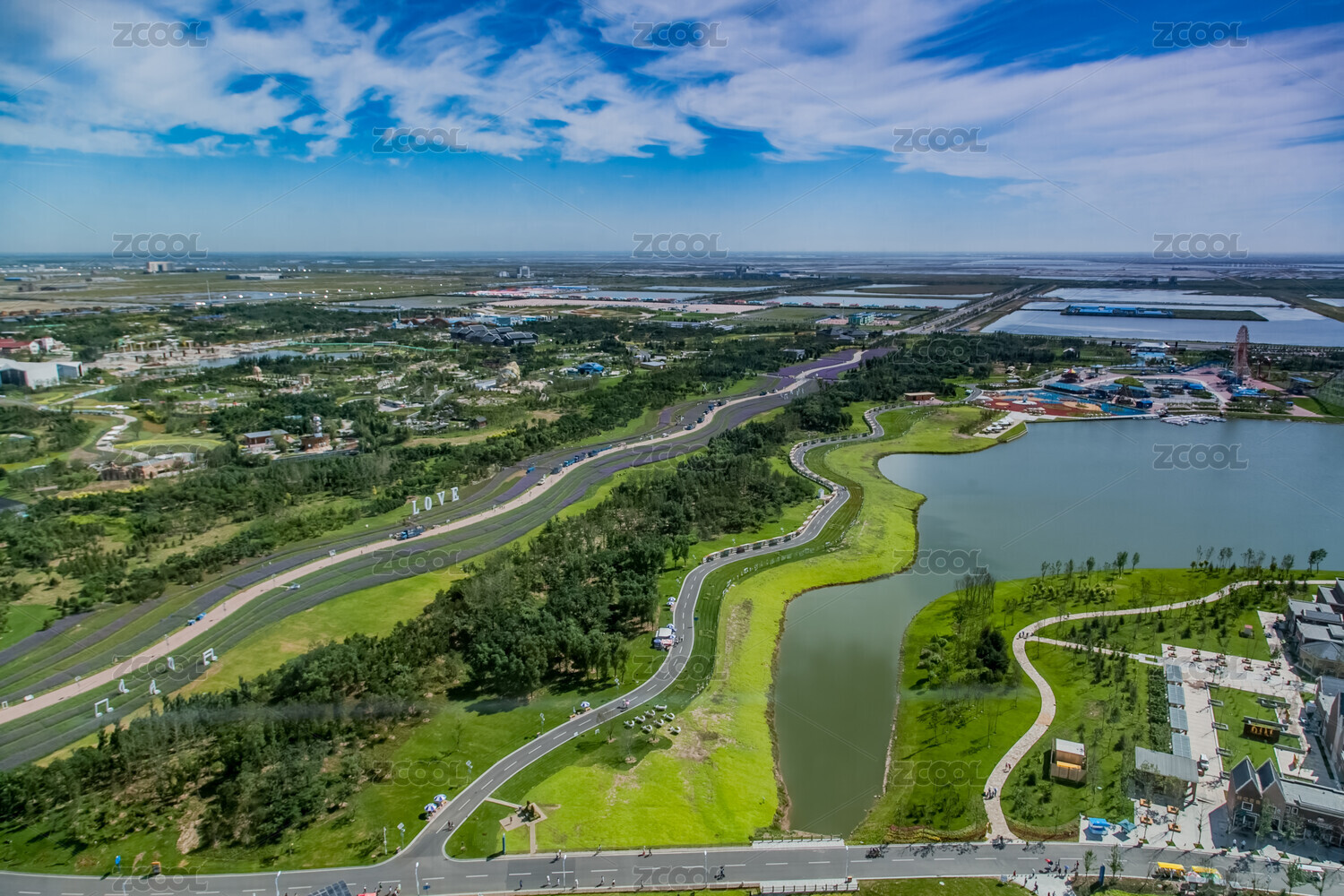 辽宁省营口市月亮湖公园航拍图片